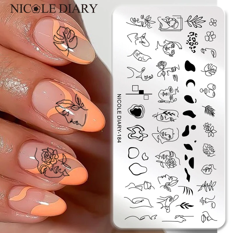 Трафарет для печати женщин NICOLE DIARY, абстрактный дизайн лица, шаблон для стемпинга для нейл-арта