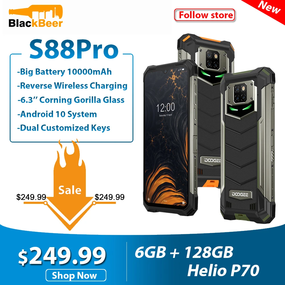 DOOGEE S88 Pro 6,3 "прочный мобильный телефон IP68/IP69K смартфон Helio P70 Octa Core 6 ГБ 128 ГБ ROM мобильный телефон Android 10,0 10000 мАч