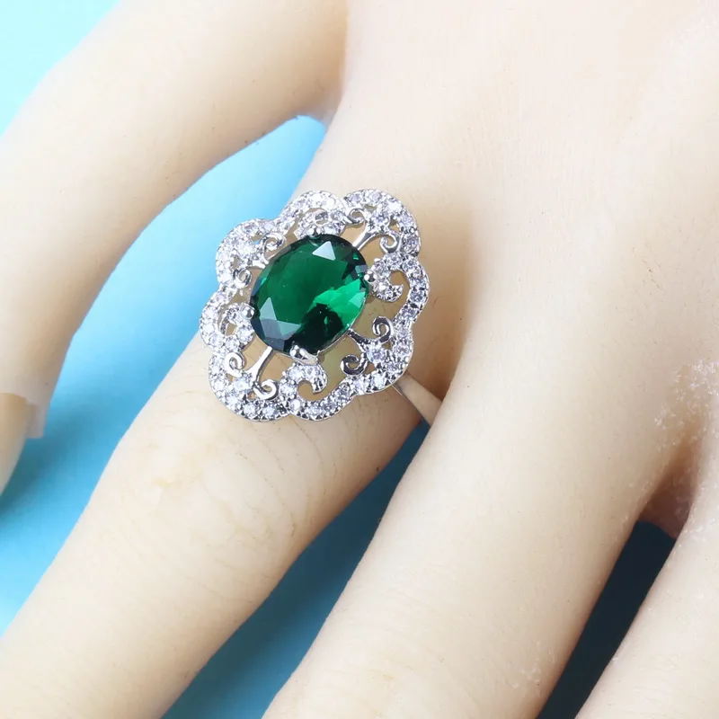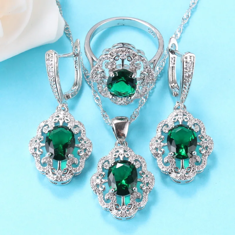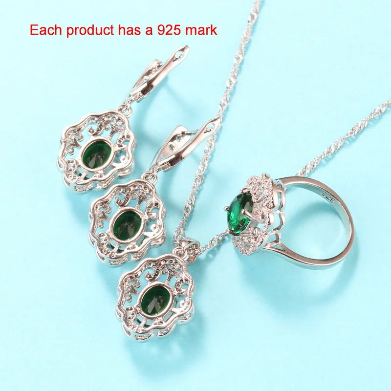 Оптовая цена серебряный цвет Свадебные Ювелирные наборы с зеленый ц...