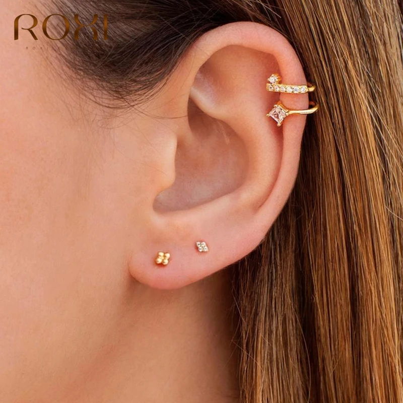 ROXI минимализм однорядные круглые бусины маленькие серьги-гвоздики для женщин серьги, Надеваемые На ушной хрящ, серебро 925 пробы