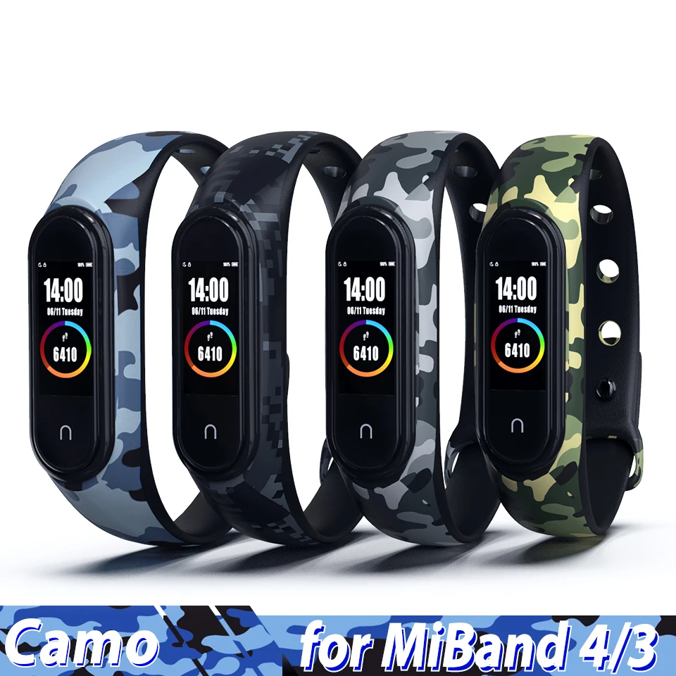 Ремешок Камуфляжный для Xiaomi Mi Band 5 Band 4 Band 3, силиконовый браслет для Xiaomi MI Band4 Band5 band3