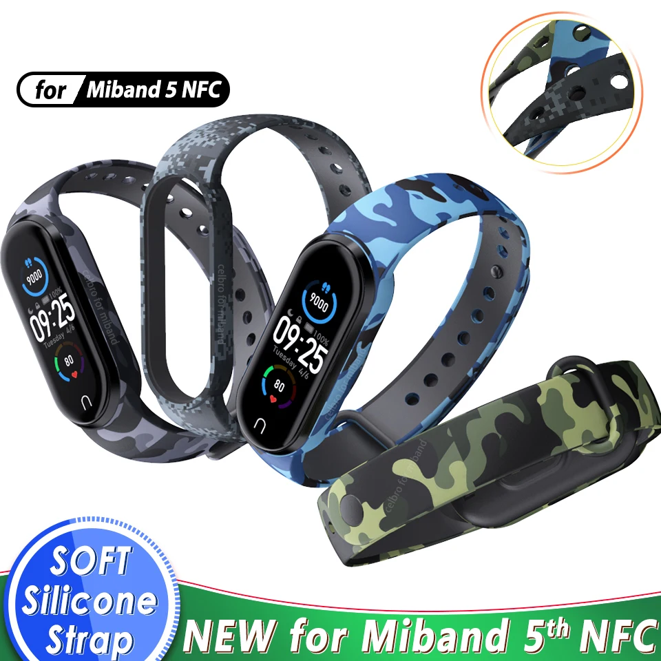 Камуфляжный ремешок для Xiaomi Mi Band 5, силиконовый ремешок для с...