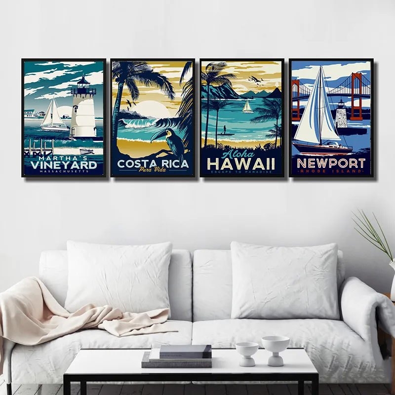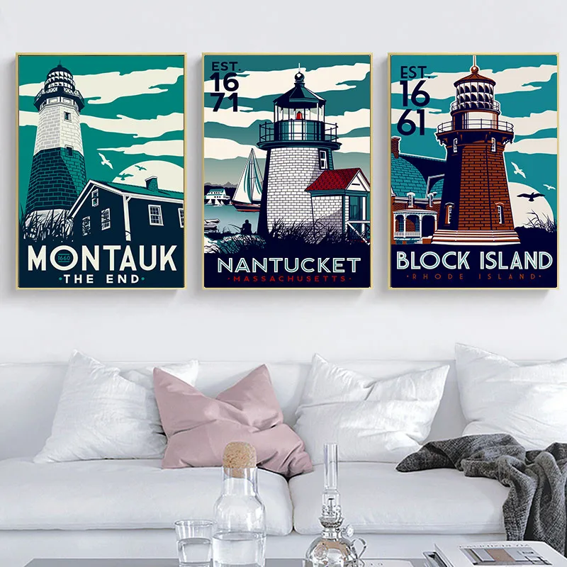 Картина Путешествия Мир Город Монтаук Гаваи ВИНТАЖНЫЙ ПЛАКАТ городская стена картины для гостиной пейзаж холст картина