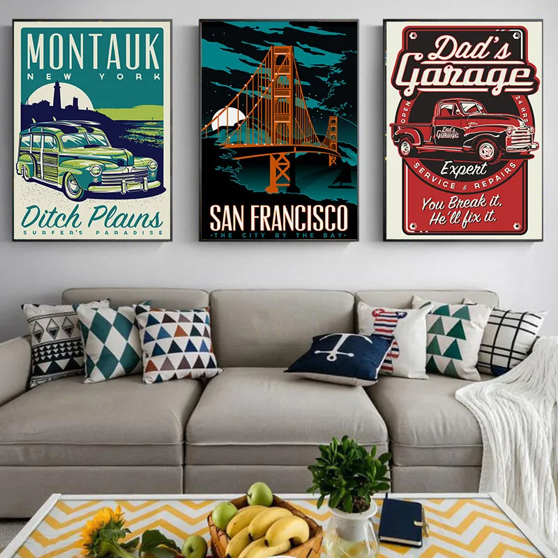 Художественные настенные картины с мультяшным изображением улицы, п...