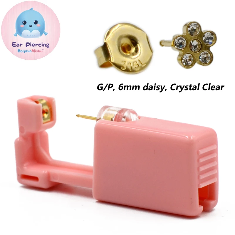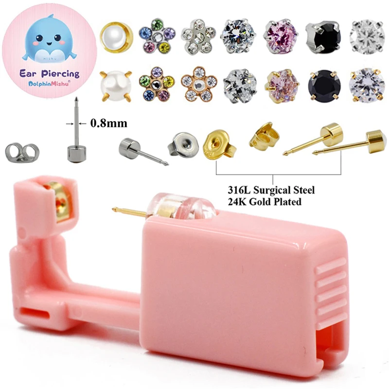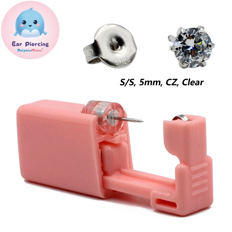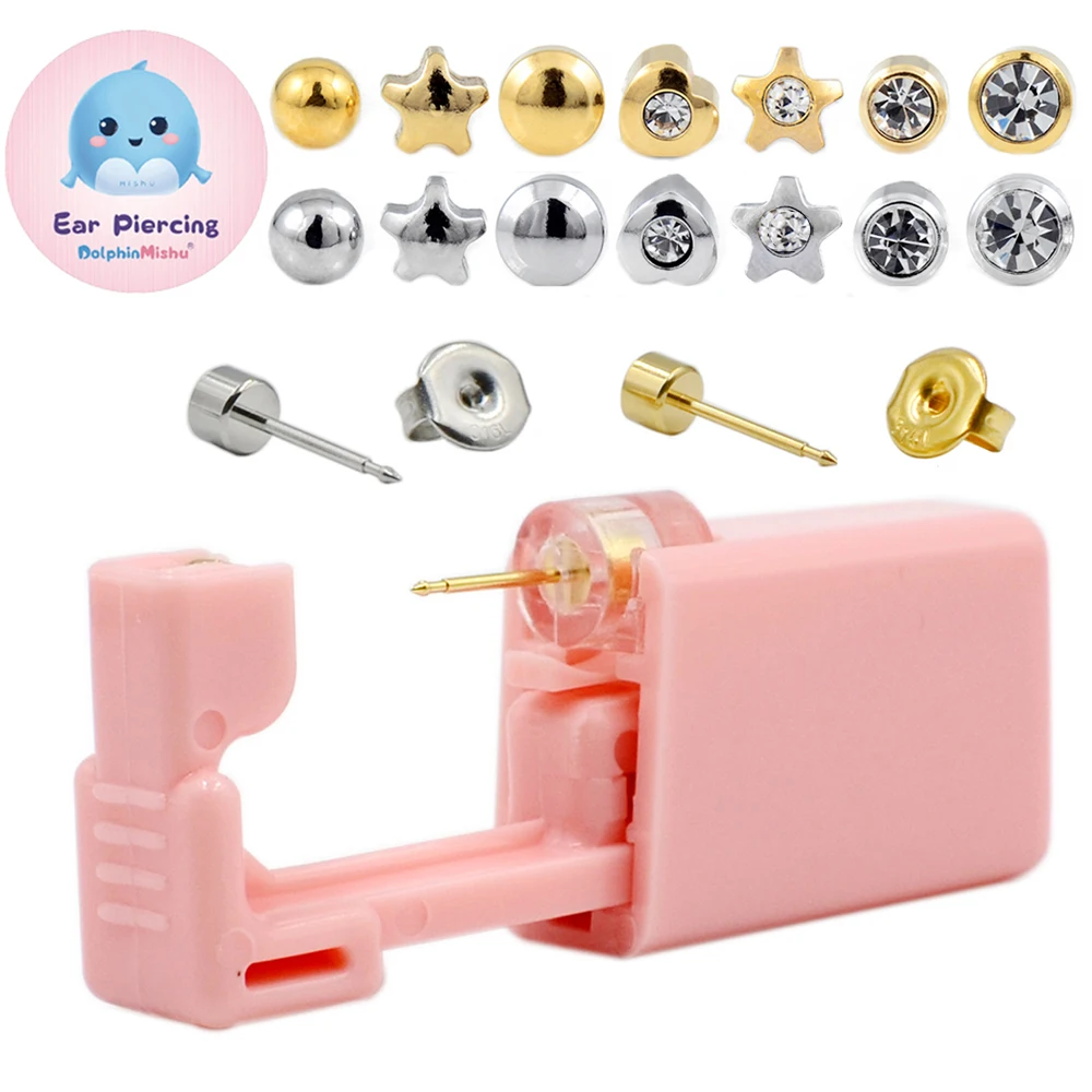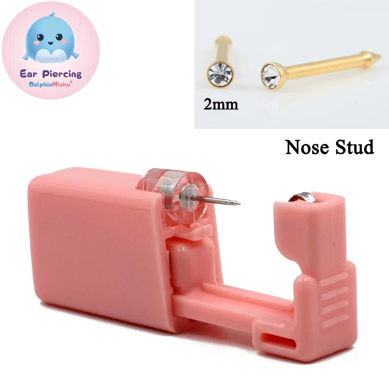 Пистолет для пирсинга дельфинмишу одноразовый, стерильное устройство для прокола хрящевой ткани уха, козелка и инструмент для пирсинга без боли, со встроенными гвоздиками, ювелирные изделия, 2 шт.