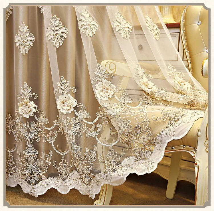 Европейские и американские роскошные белые и кремовые вышитые шторы для гостиной, окон, спальникухни