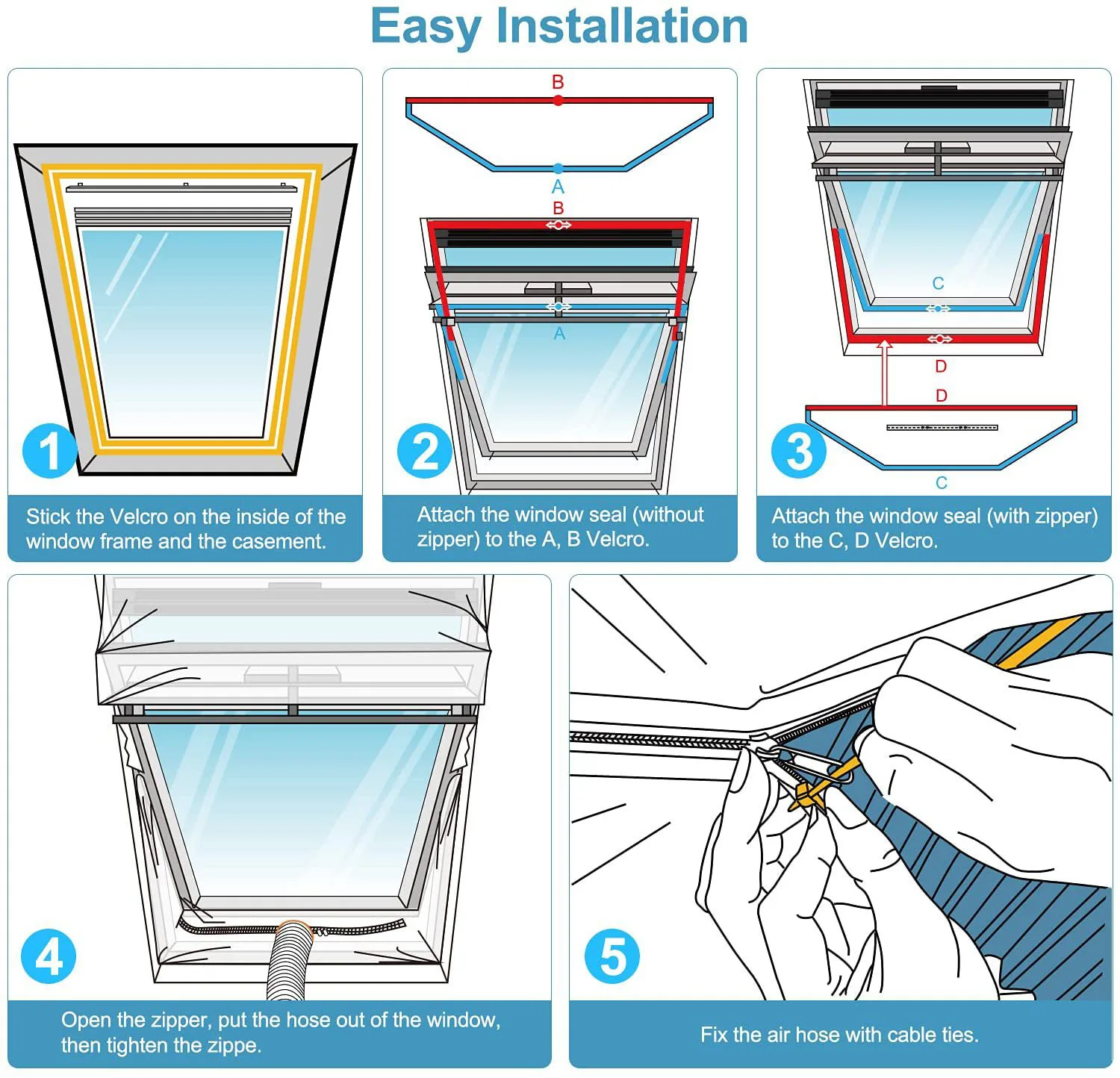 Этот продукт доступен как в двери, так и в окне, чтобы удовлетворить все ваши потребности. Подходит для всех портативных кондиционеров и сушильных машин независимо от производителя.