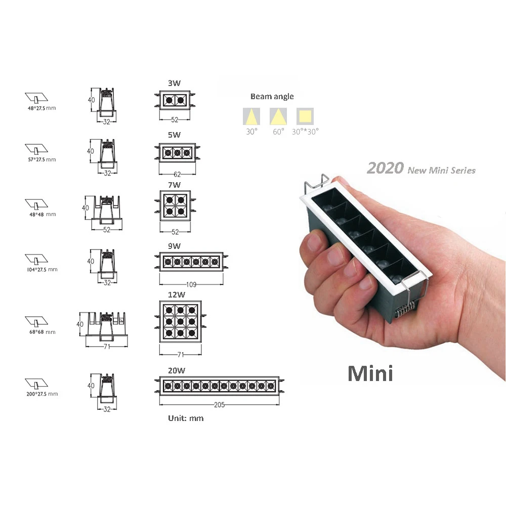 Мини-светильник JOYINLED, квадратный, линейный, встроенная подсветка, RA90, 3 Вт, 5 Вт, 7 Вт, 9 Вт, 12 Вт, 20 Вт