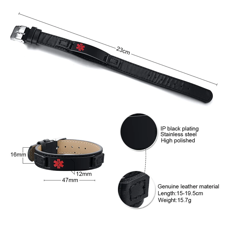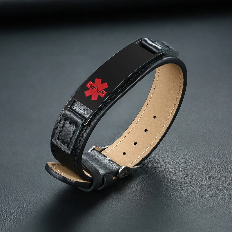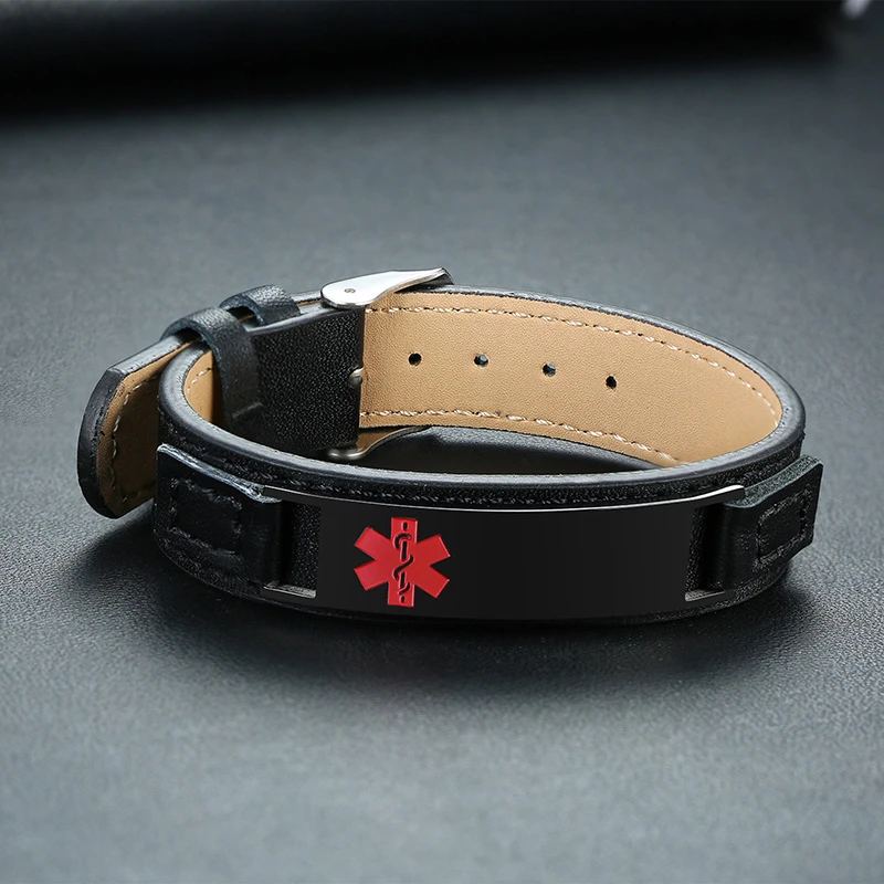 Индивидуальные кожаные медицинские браслеты с оповещением, мужские и женские браслеты на заказ с бесплатным уведомлением при диабете и аллергии, браслет с аварийным уведомлением, ювелирные изделия