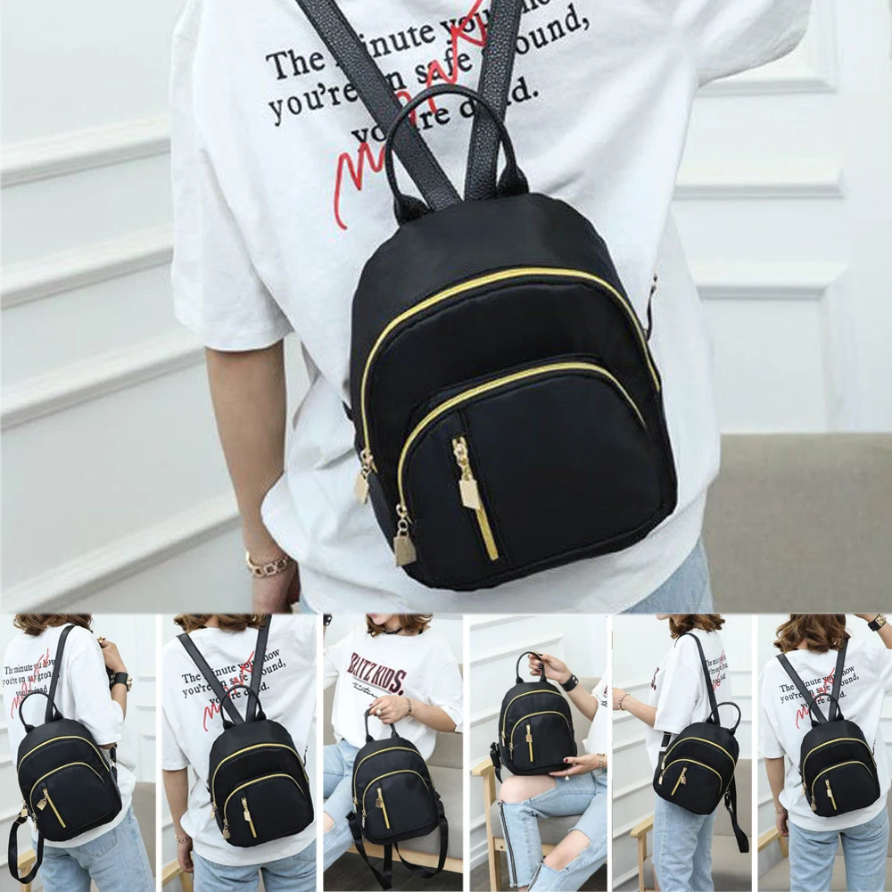 Женский нейлоновый мини-рюкзак, черный повседневный дорожный рюкзак...