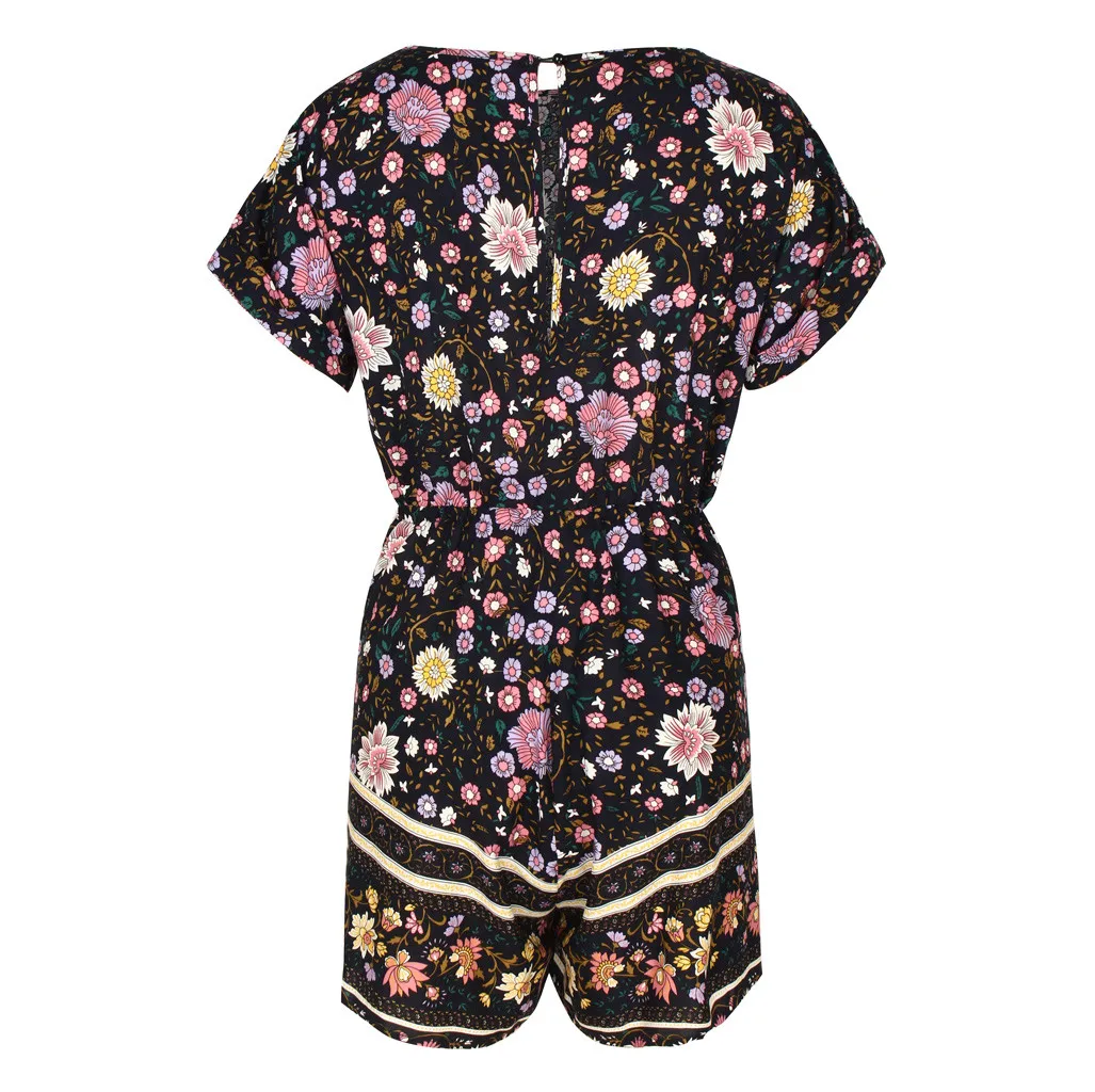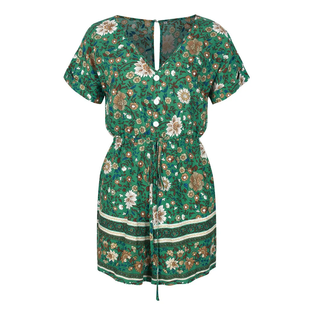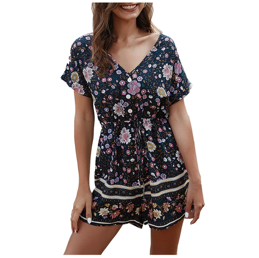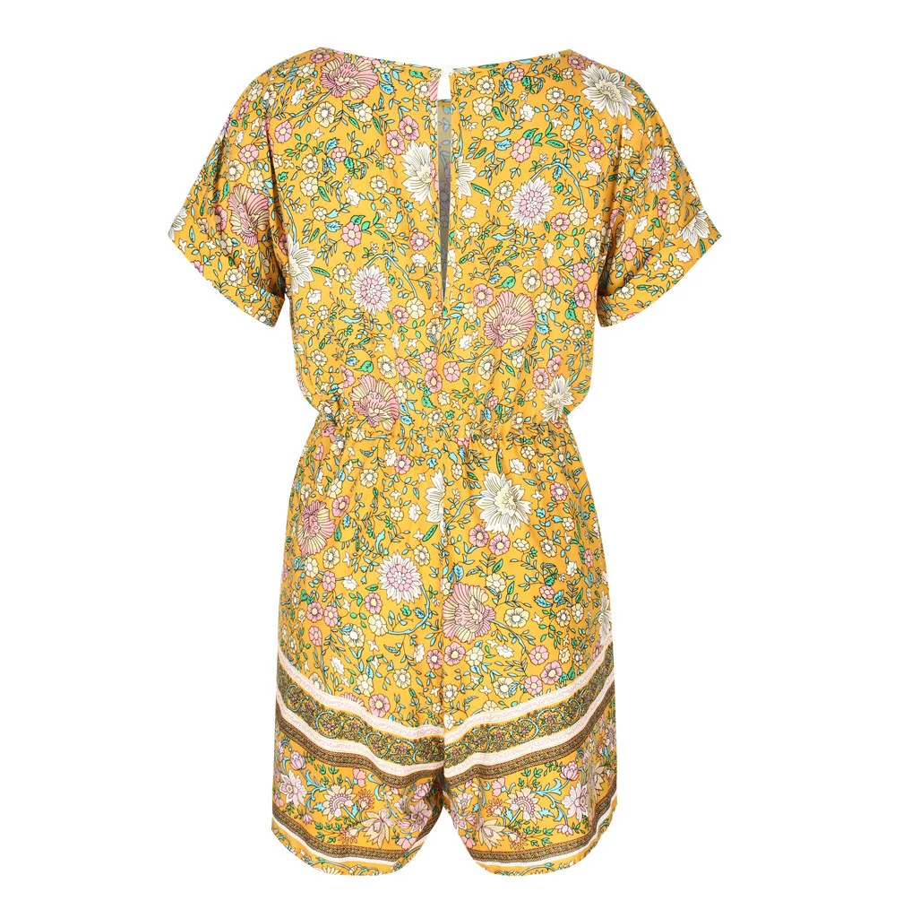 Модные женские летние богемные боди с v-образным вырезом, повседневные пляжные вечерние комбинезоны с коротким рукавом и цветочным принтом, короткий комбинезон # p3