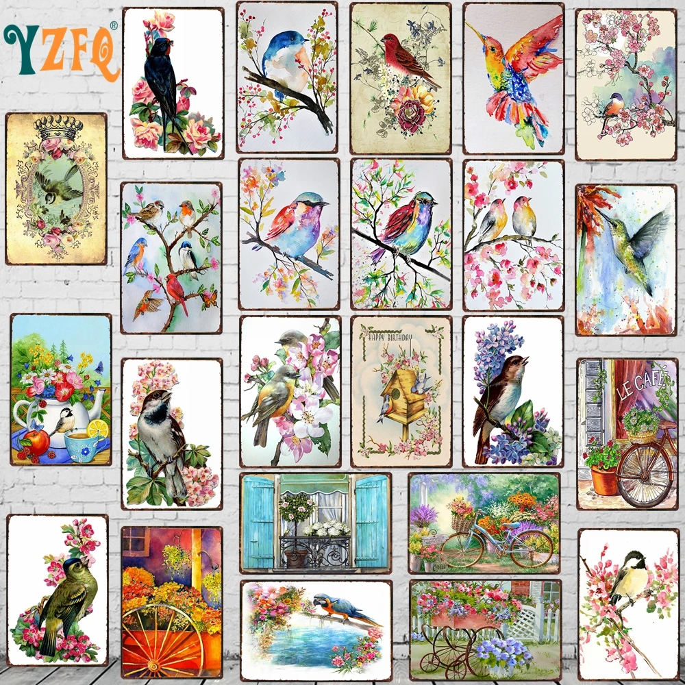 Садовый цветок лаванды знак птицы доска Металл Ретро настенное Искусство ретро домашний декор 30x20 см DU-8907A