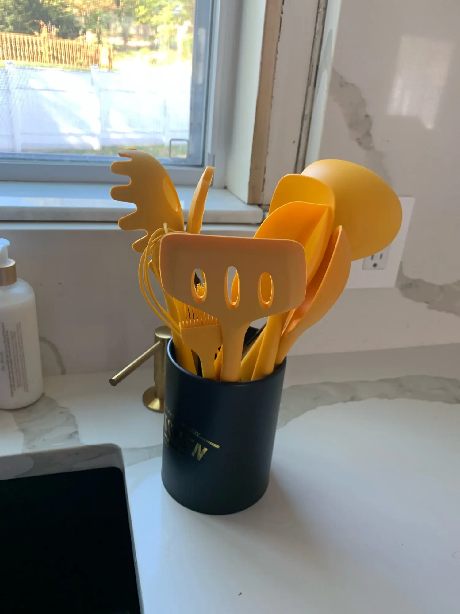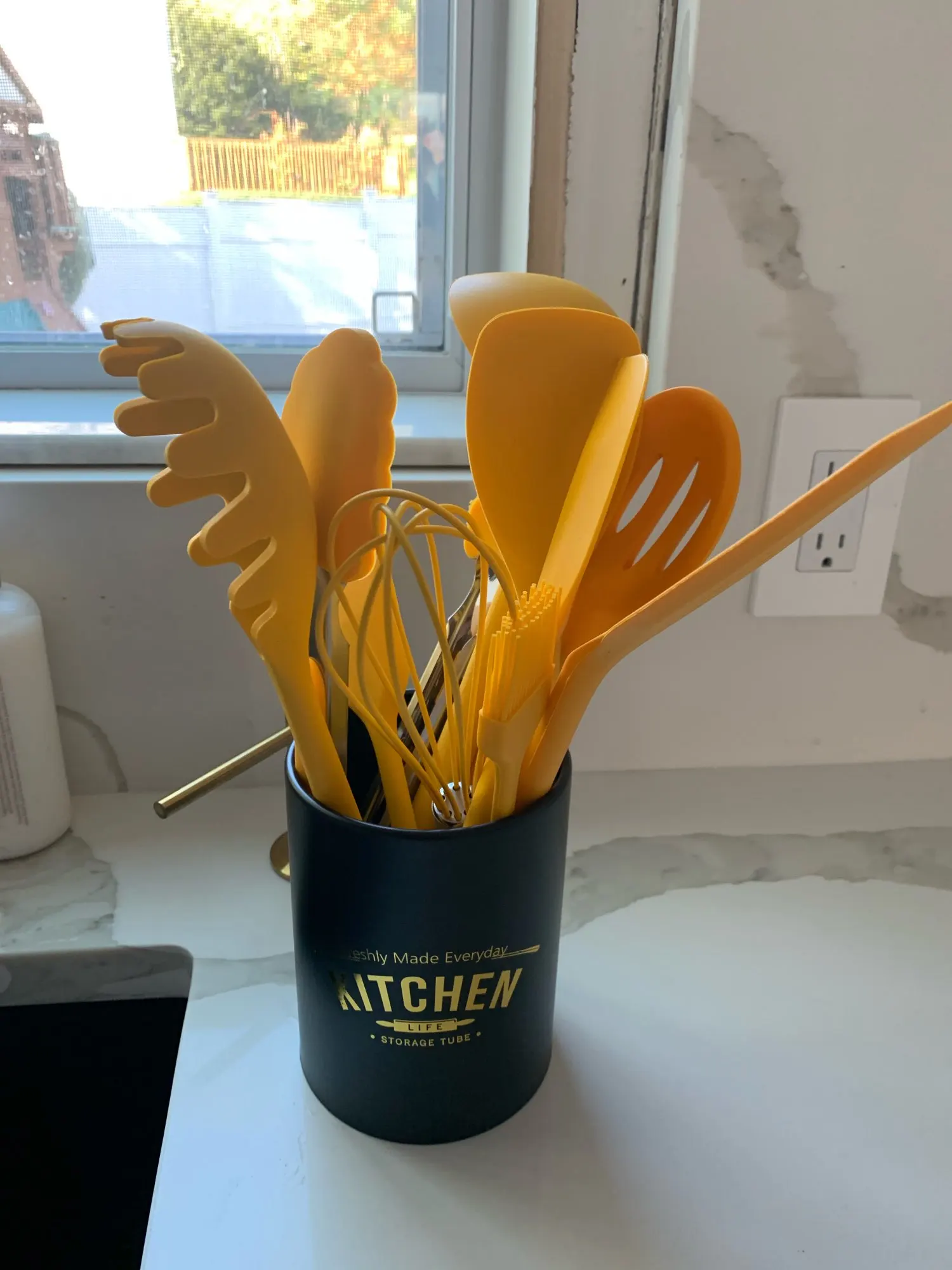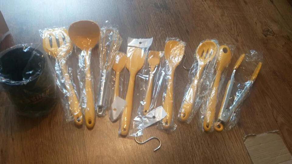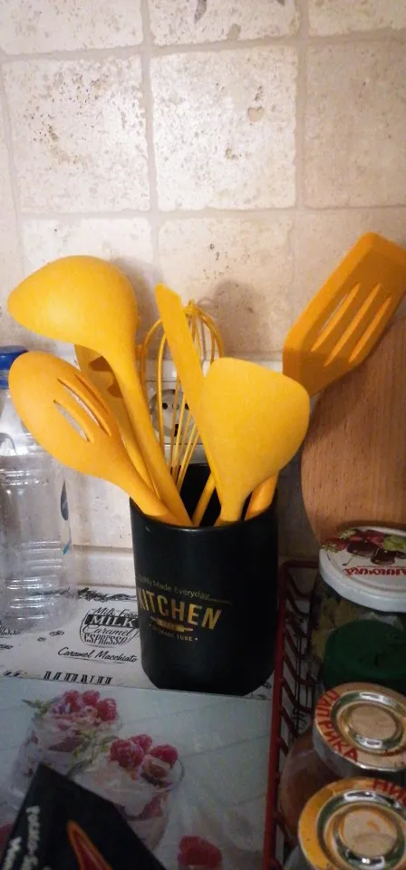 Скорость доставки очень быстрая. Мне очень нравится цвет этого набора кухонных инструментов. Мне нравятся яркие цвета.