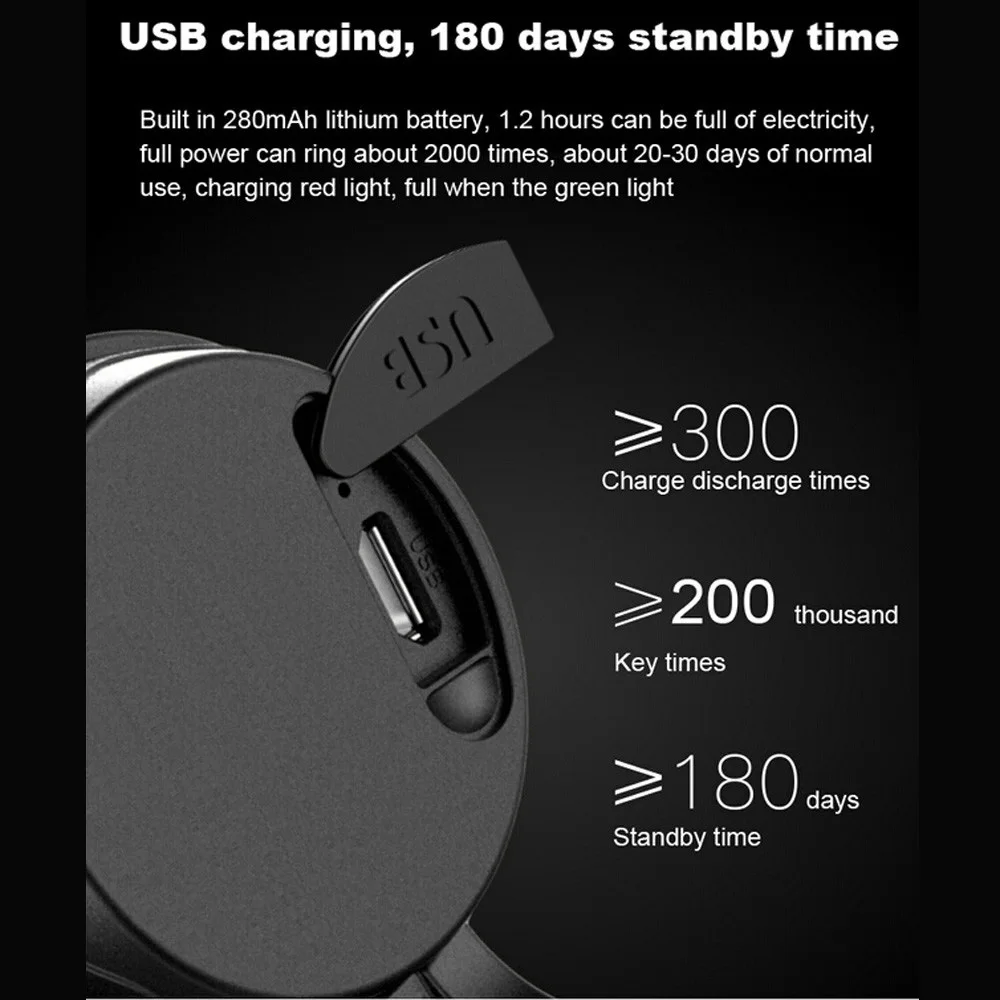 Особенности: Долгое время работы Велосипед кольцо с 280 мА/ч, встроенная литиевая батарея, после того, как платить за 1,2 часов, используется для 20-30 дней, а также кольцо около 2000 раз. Красный светильник означает процесс зарядки, а зеленый светильник означает, что мощность полная. Громкий Велосипедное кольцо имеет повышенную цепь высокого качества, чей звук может достигать 120 дБ. Есть три режима для регулировки, включая whistler, звук трубы и звук сирены. Отдельный дизайн Звонок и ключ разделены, чтобы избежать того, чтобы ваша рука покидала ручку, когда вы используете звонок. Клавиша контроллера устанавливается рядом с большим пальцем, Легко щелкнуть и переключить звук, чтобы вы могли безопасно ездить. Простая установка Велосипедное кольцо может быть легко установлено на рукоятке силиконовой лентой в течение 2 секунд. Силиконовая лента имеет два механизма для выбора, который подходит для ручки 22-31,8 мм. Он совместим с скутером, горным велосипедом, шоссейным велосипедом и т. д. Прочный Велосипедное кольцо IP65 может противостоять воде, ржавчине и падению. Идеально подходит для использования на открытом воздухе. Пожалуйста, не забудьте закрыть водонепроницаемый чехол после зарядки, чтобы предотвратить дождь. Тонкий и компактный Велосипедное кольцо составляет всего 2,59*1,93 ''(Д * Ш). Он деликатный и компактный, который легко спрятать на внутренней стороне рукоятки, чтобы избежать влияния на работу торможения, переключения и так далее. Спецификация: Тип: Велосипедное кольцо Количество: 1 шт. Материал: АБС-пластик + Поликарбонат Цвет: красный/синий/черный Звук: 110-120 дБ Входное напряжение: 5v-250ma Аккумулятор: встроенный аккумулятор 280 мАч Время зарядки: 1,2 часов Время работы: 20-30 дней Водонепроницаемость: IP65 Режимы: whistler, звук трубы и звук сирены Подходящий диаметр ручки: 22-31,8 мм Размер: 66*49 мм/2,59*1,93 ''(Д * Ш) Вес нетто: 85 г/3 унции Упаковочный лист