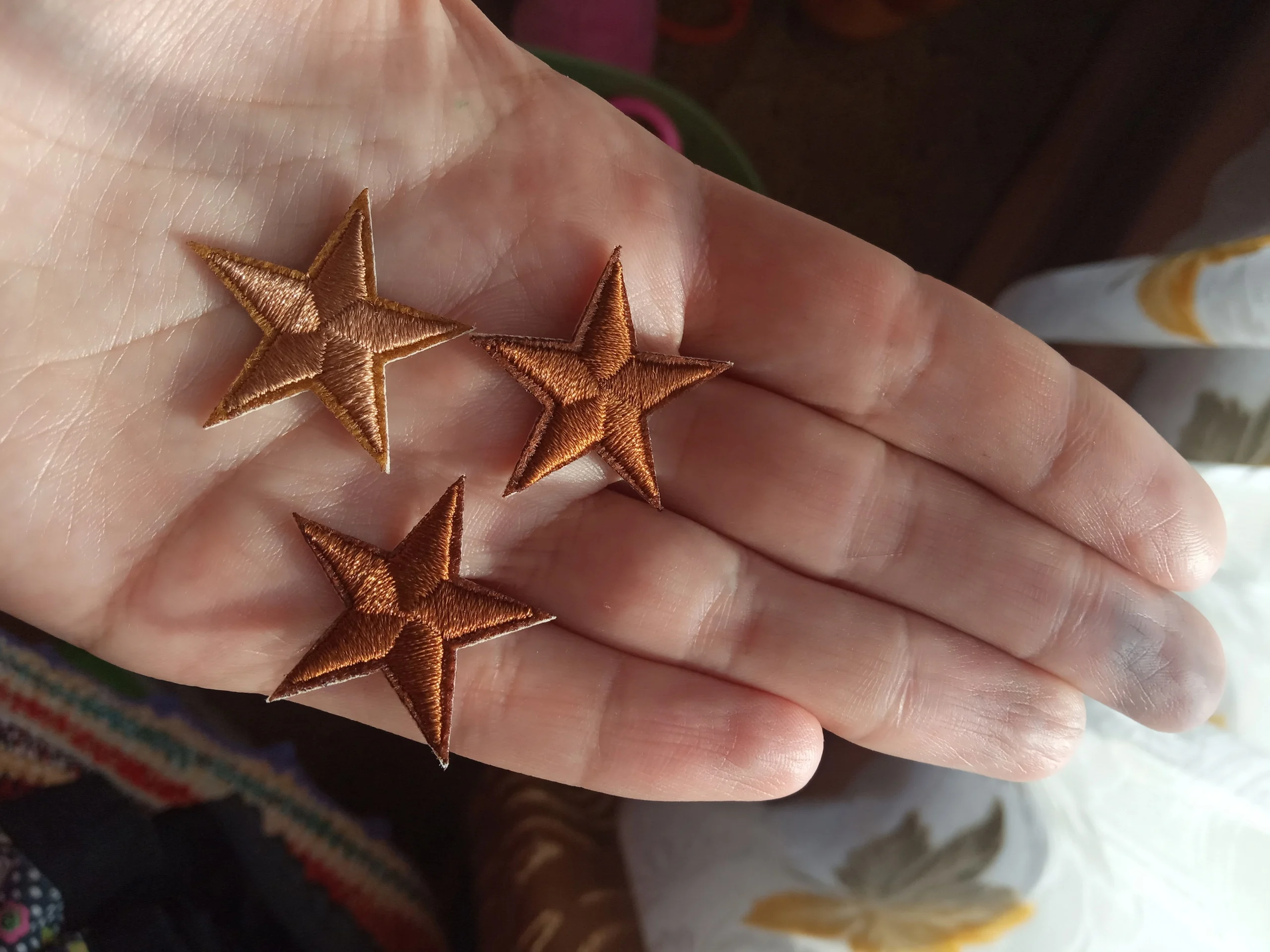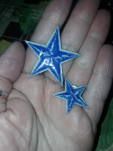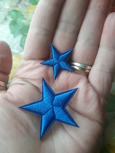 Чудесные звёзды(☆▽☆).Купила чтобы замаскировать порез на зимнем пальто. Не сильно блестят,хоть вроде из атласных нитей нашиты,для меня это плюс так как пальто матовое. Единственное доставка долгая,около 3х месяцев. P.S если приглядеться то не вся область звёзды нашита нитками,я зачем-то решила её срезать в итоге звезда стала кривая. Заказала новые,надеюсь в этот раз доставка будет быстрее.