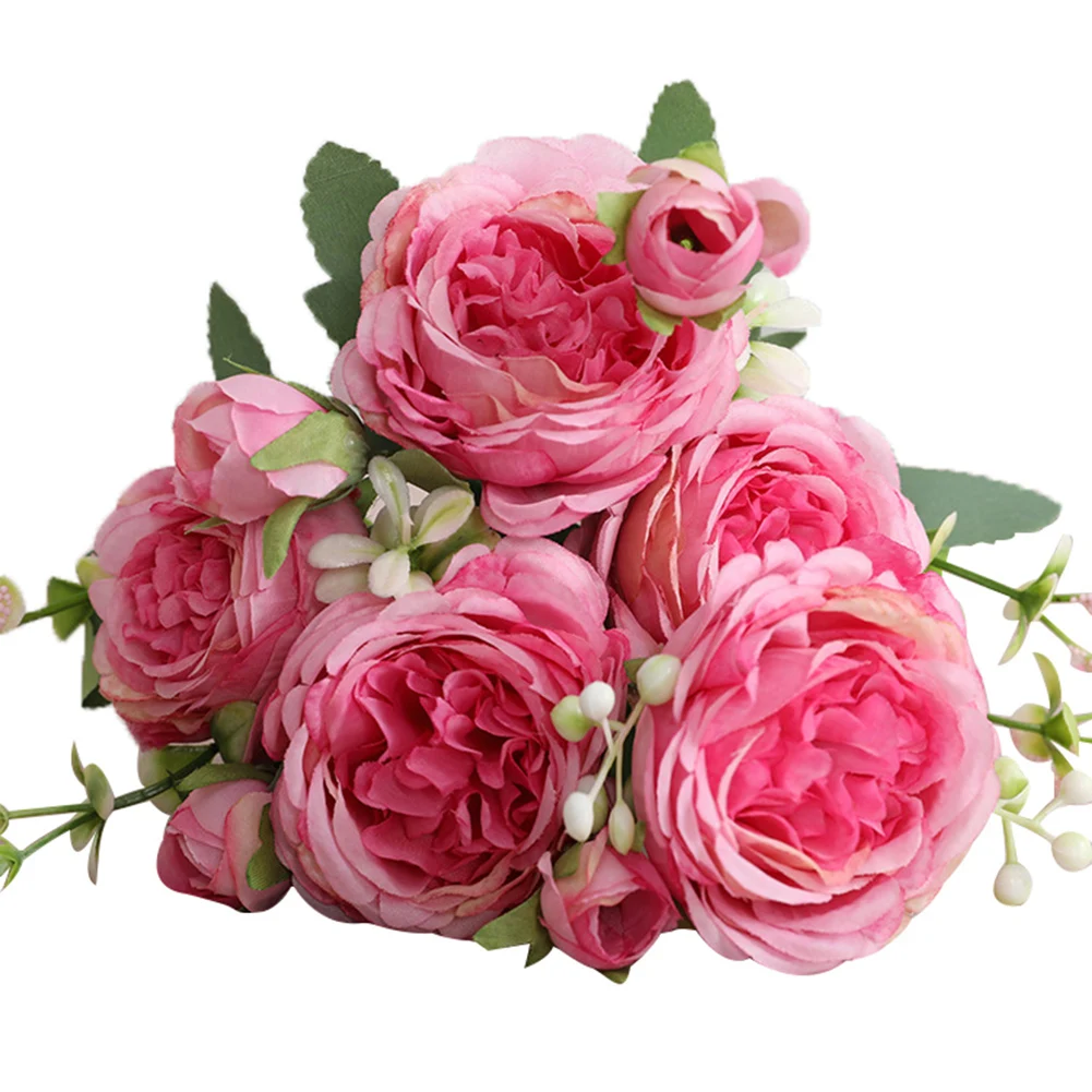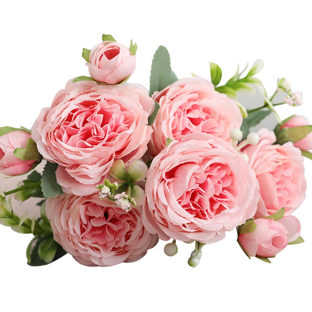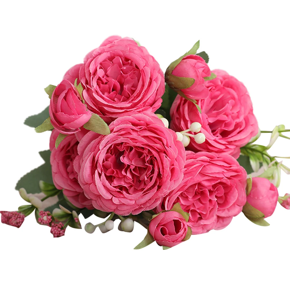 Искусственные цветы, 30 см, Розовый Шелковый Букет пионов, 5 больших головок, 4 маленьких бутона, Декоративные искусственные цветы для невесты, дома, свадьбы