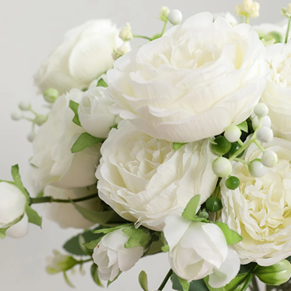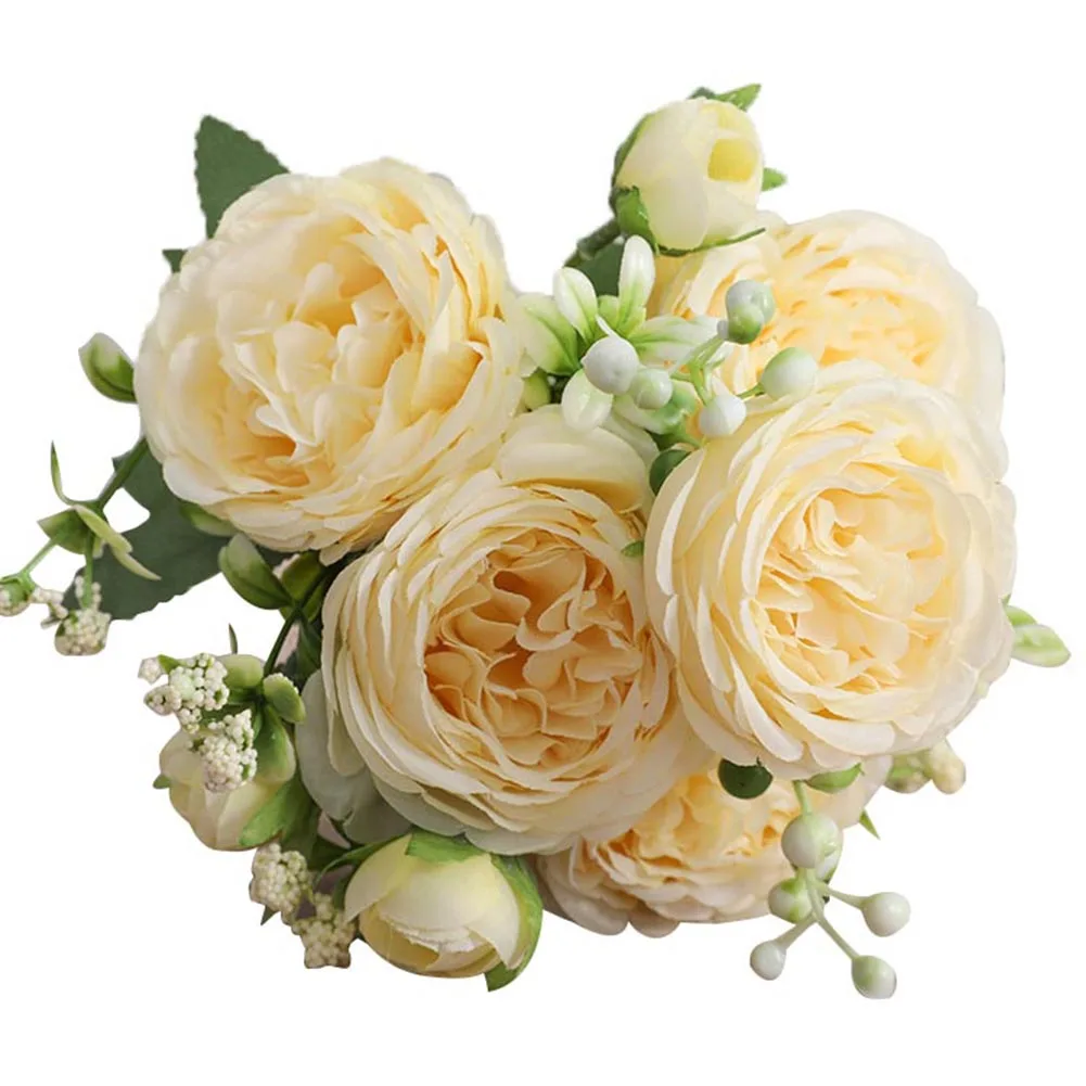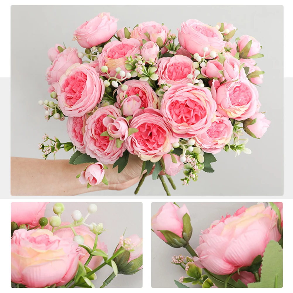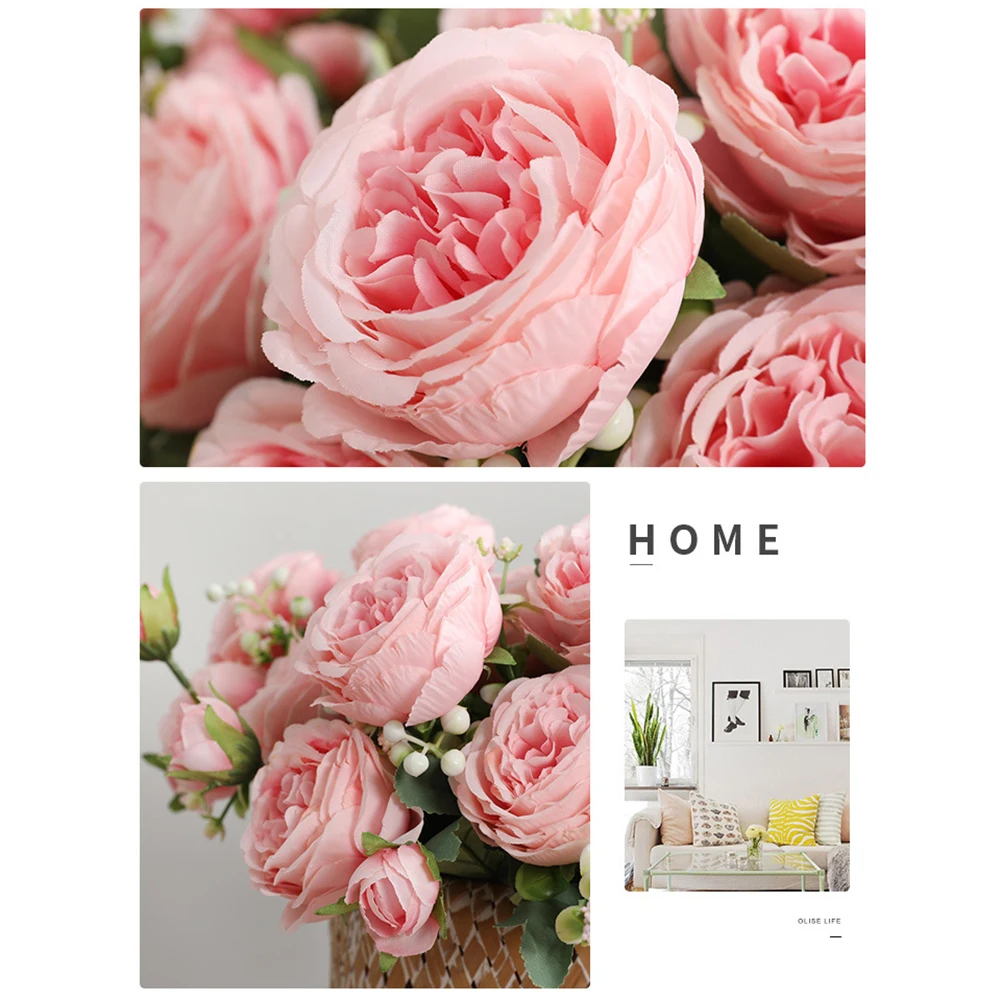 Искусственные цветы, 30 см, Розовый Шелковый Букет пионов, 5 больших головок, 4 маленьких бутона, Декоративные искусственные цветы для невесты, дома, свадьбы