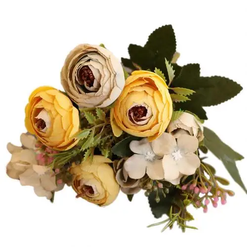 Структура: 4 больших цветка + 2 маленьких цветка + 2 гортензииОсобенности: имитация цветка, домашний декор, красивый, ручная работа, реквизит для фотосъемкиОбщая длина: 27 см/10,63 "(прибл.)Цветочного бутона Диаметр: 4 см/1,57 "(прибл.)