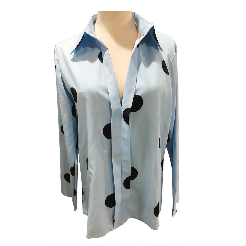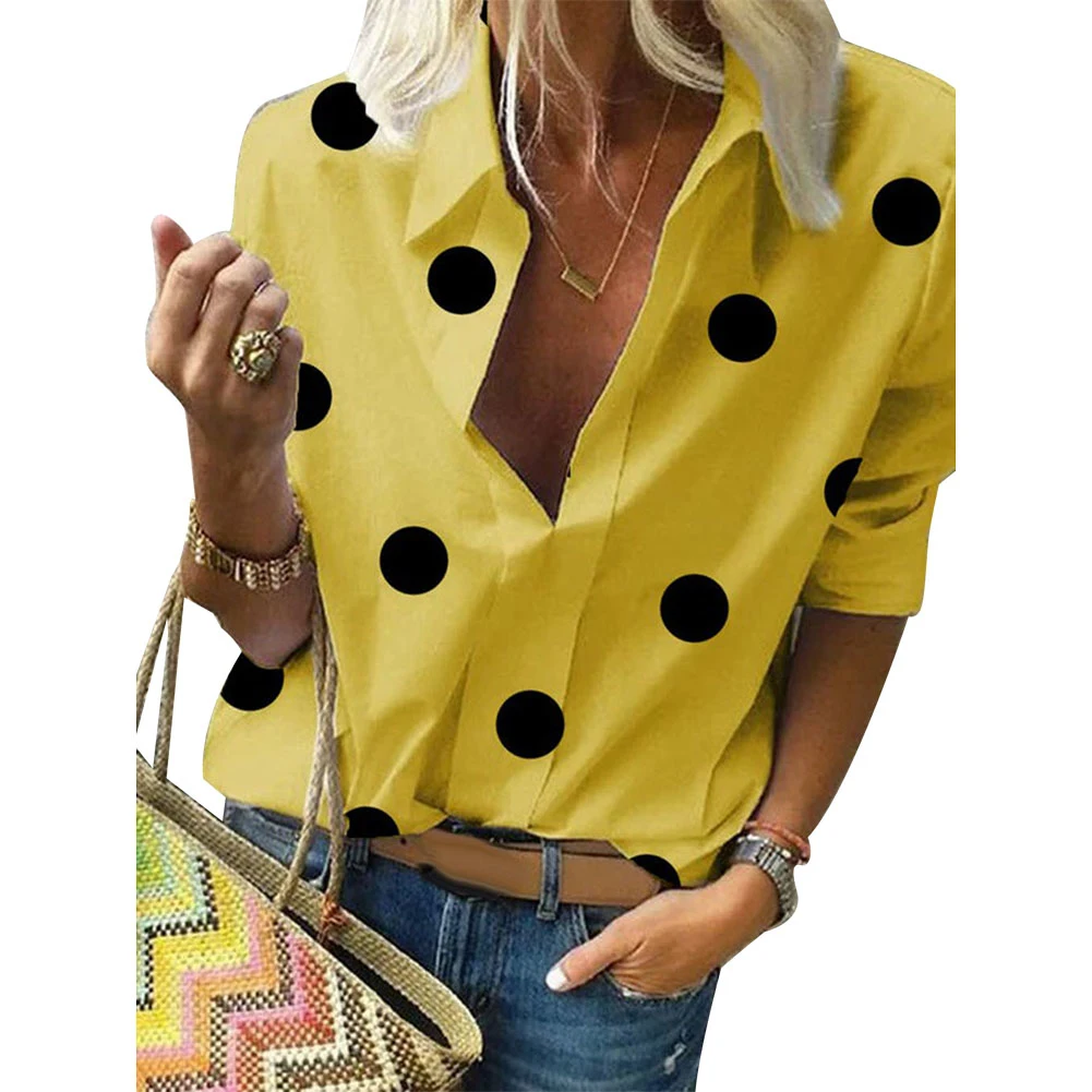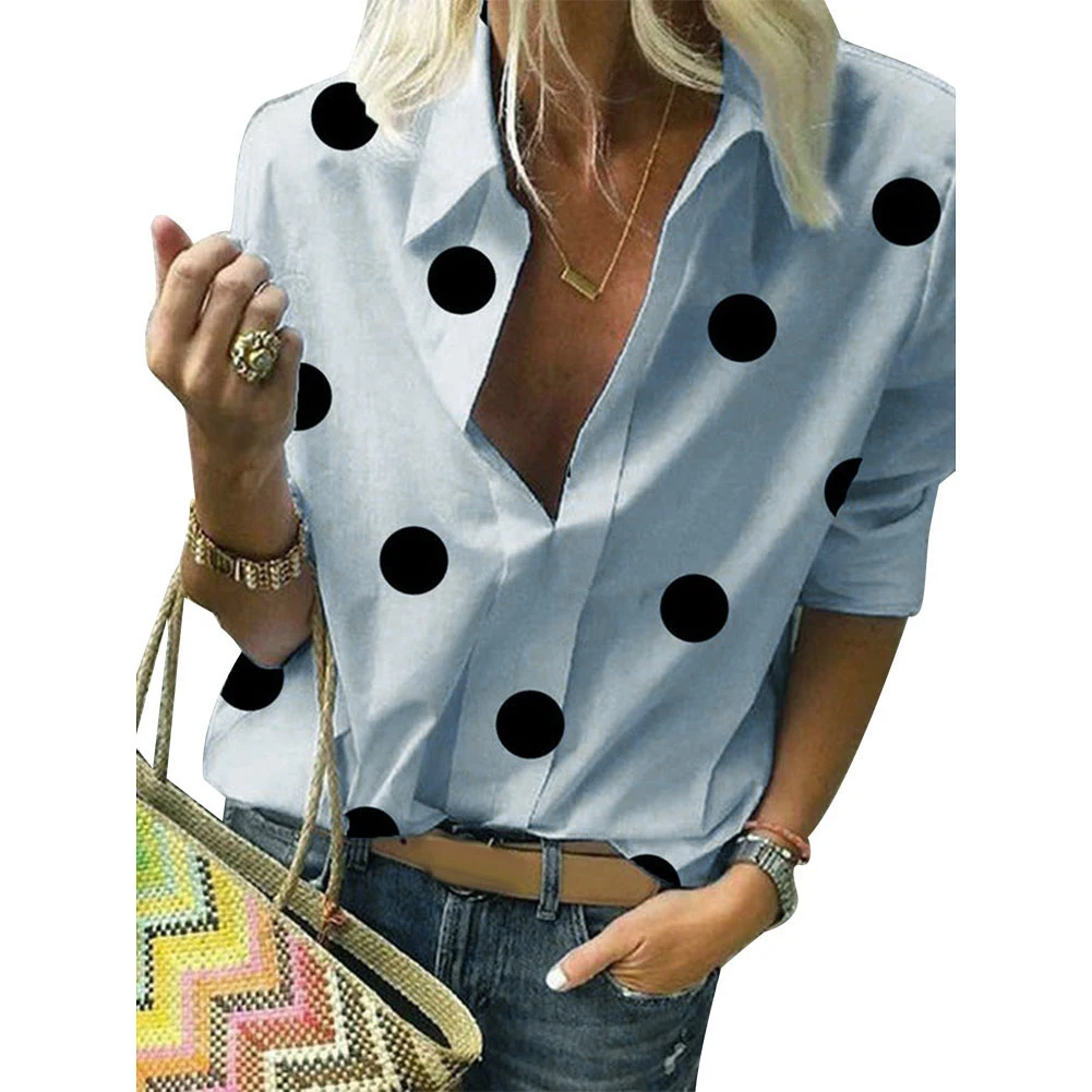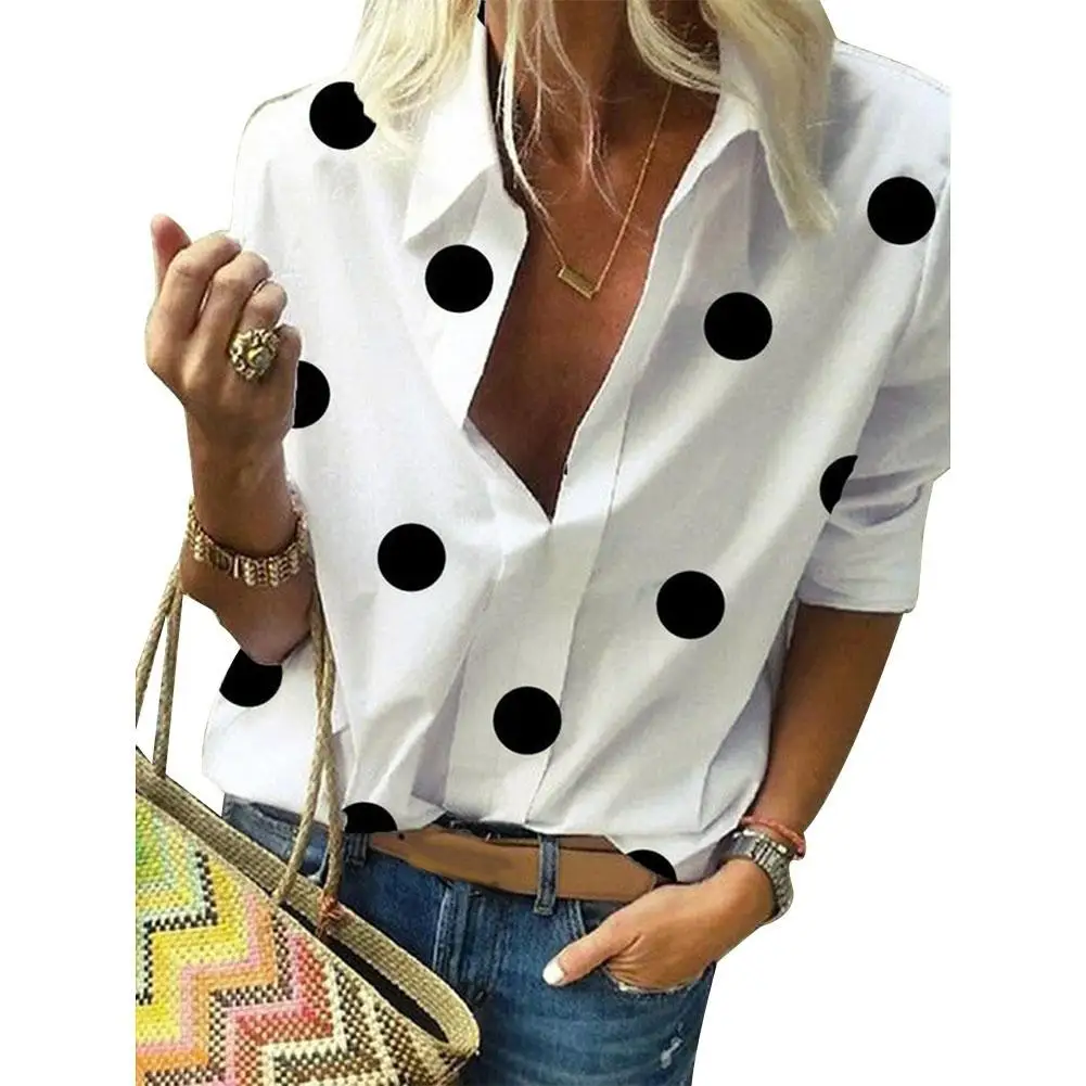 Модная Офисная Женская рубашка с отложным воротником и длинными рукавами в горошек, Повседневная Блузка, 2020
