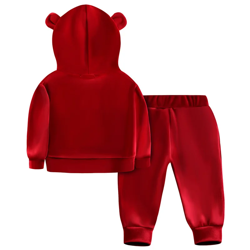 Детская одежда, теплый костюм для маленьких мальчиков, Детский свитер с капюшоном, Повседневная Новая одежда для маленьких девочек с надписью love, золотистый бархатный костюм из двух предметов