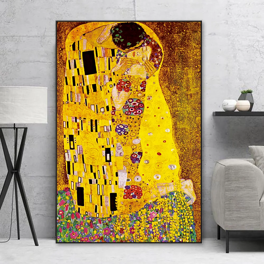 Настенная картина Gustav Klimt Kiss с абстрактным рисунком, настенная Картина на холсте, плакаты и принты для декора гостиной
