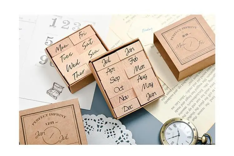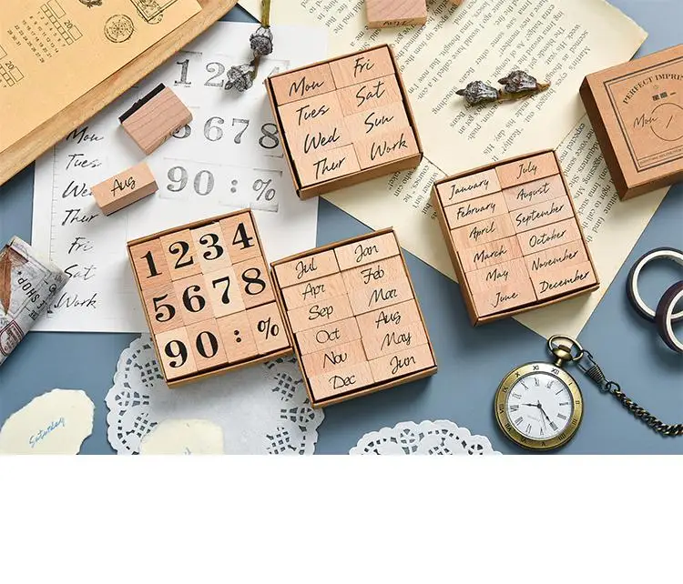 Деревянный набор штампов месяц и неделя печать школьные канцелярские принадлежности поставщики офисные аксессуары, представленные Кевин sasa ремесла