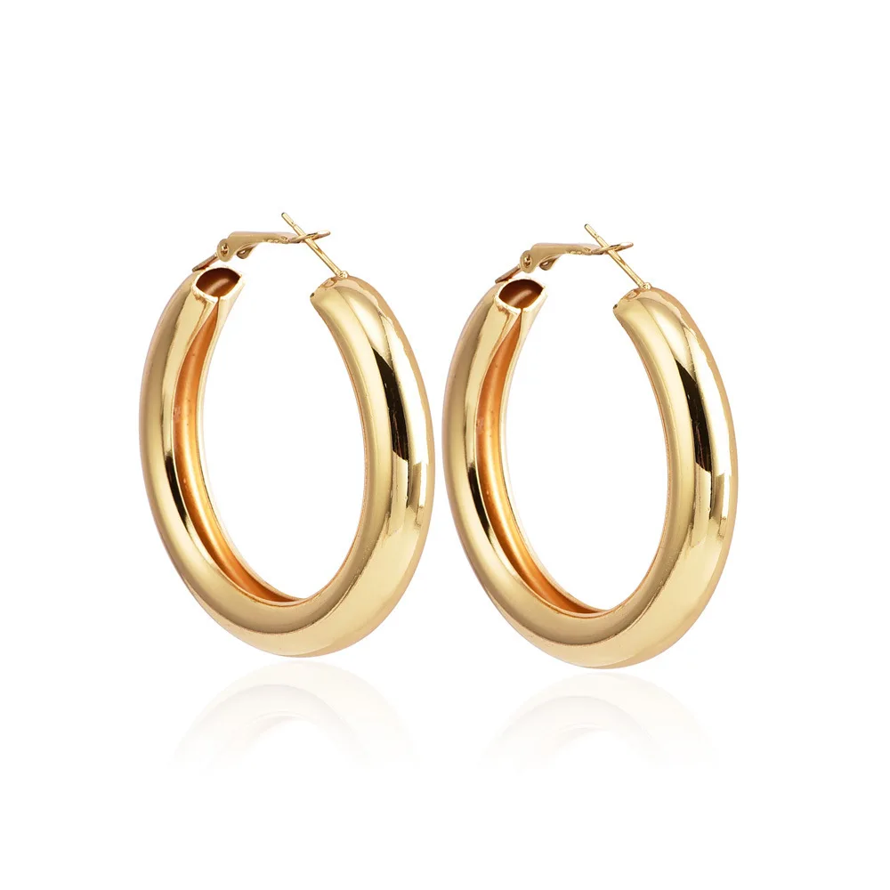 Серьги-кольца в Корейском стиле женские, Крупные круглые серьги золотого и серебряного цвета с толстой трубкой из цинкового сплава, в стиле хип-хоп, рок, 50 мм
