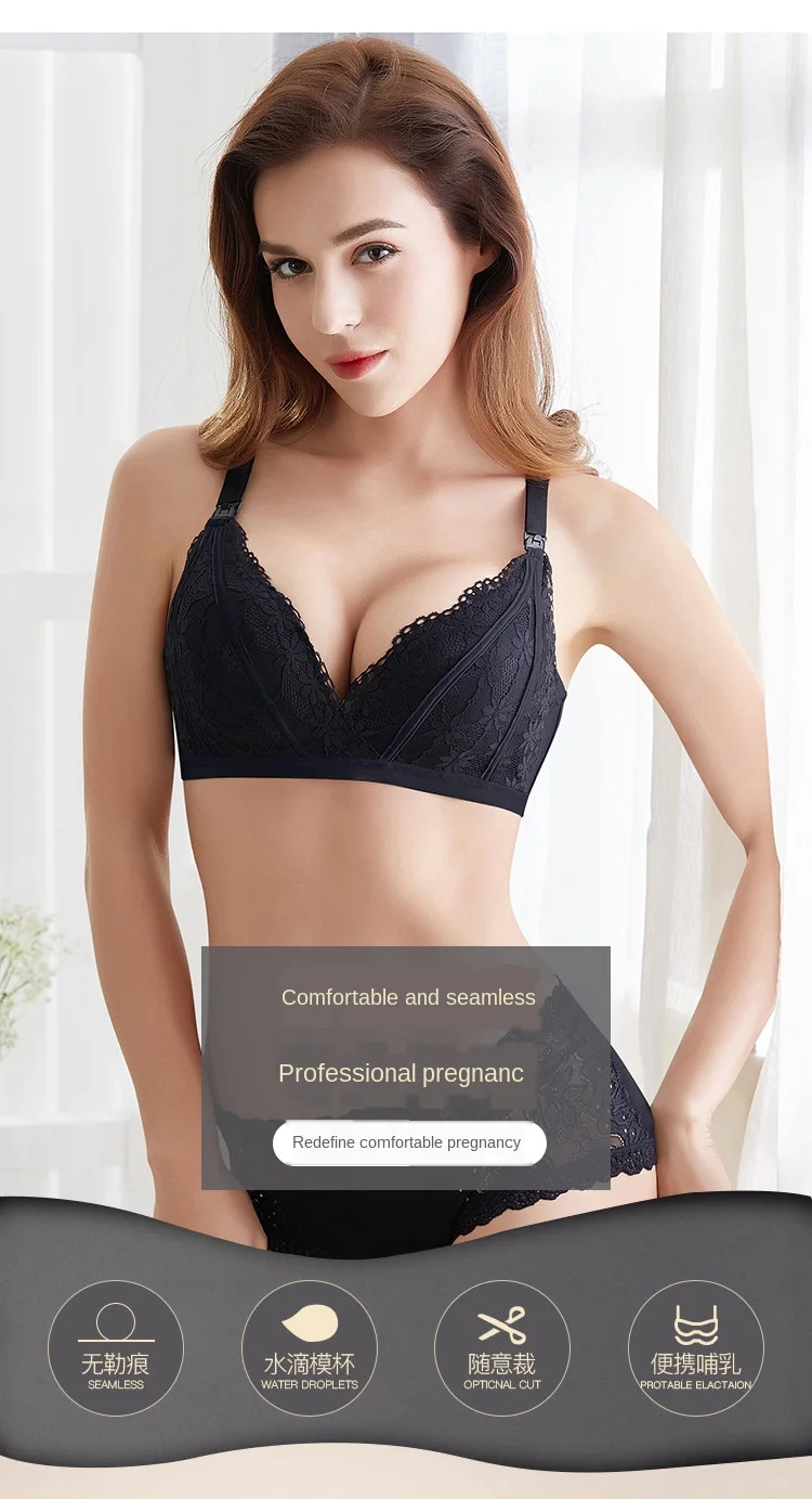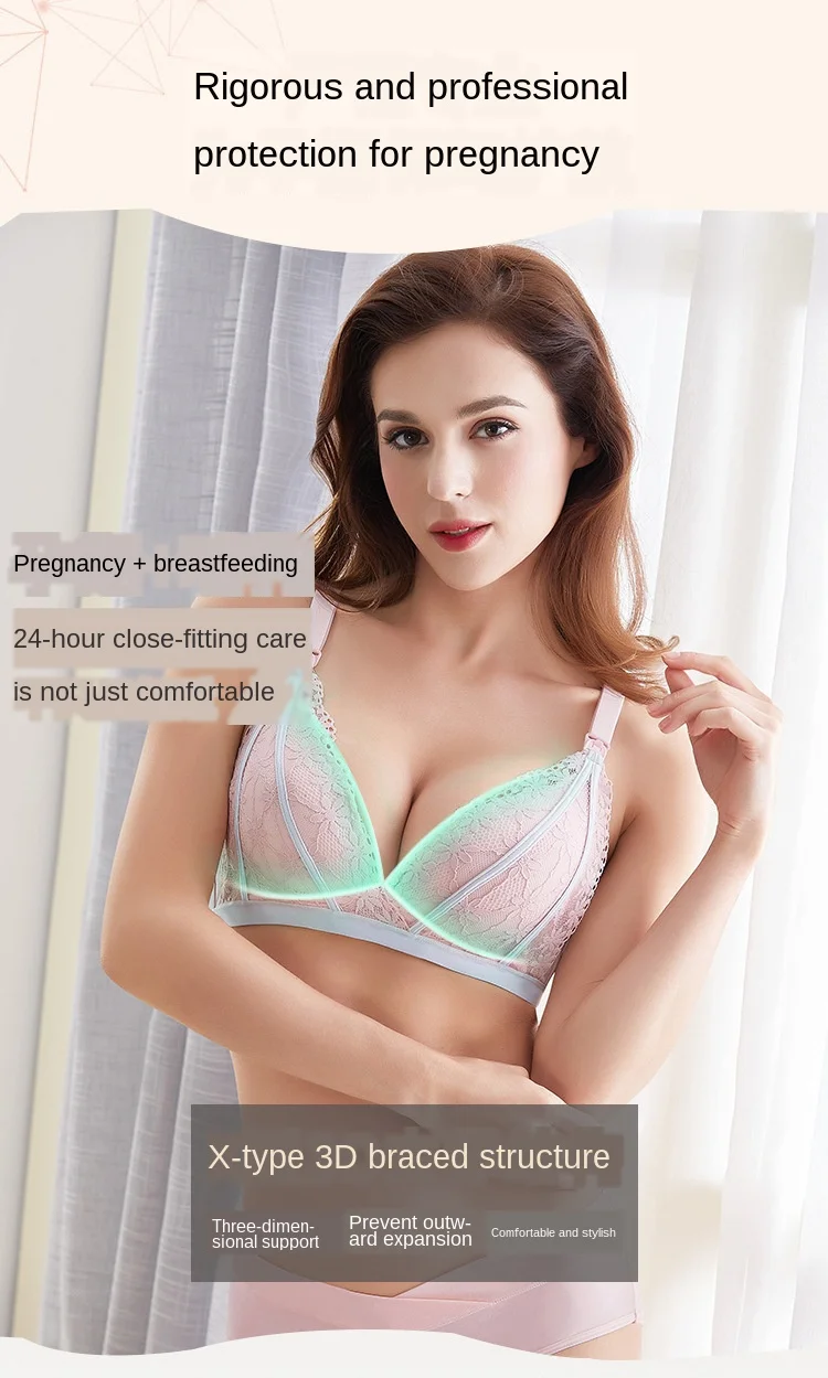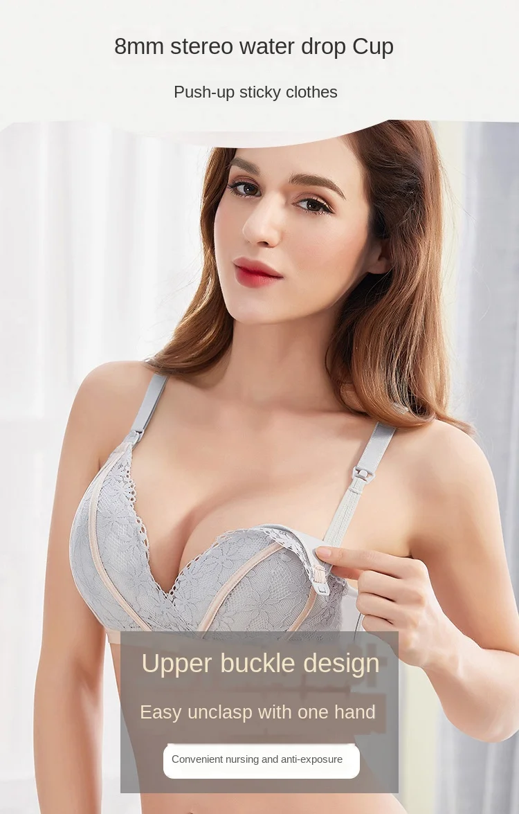 Бюстгальтер для грудного вскармливания для кормящих матерей, кружевное нижнее белье с открытыми пуговицами для беременных женщин, Послеродовая E-чашка