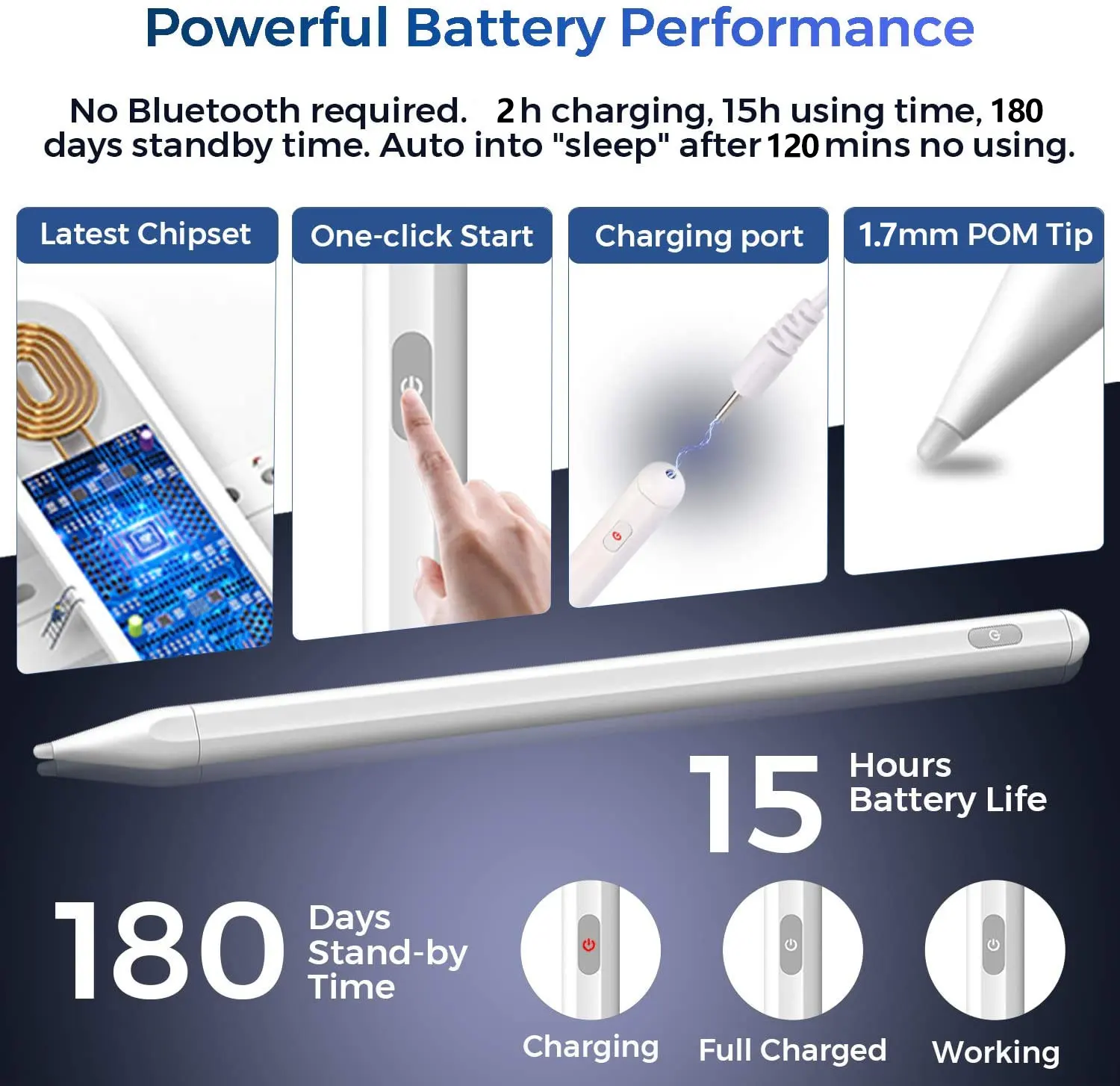 Улучшенный карандаш Apple стилус для iPad с защитой от ладони, что позволяет удобно держать ладонь на экране iPad во время записи или рисования, перчатки не требуются