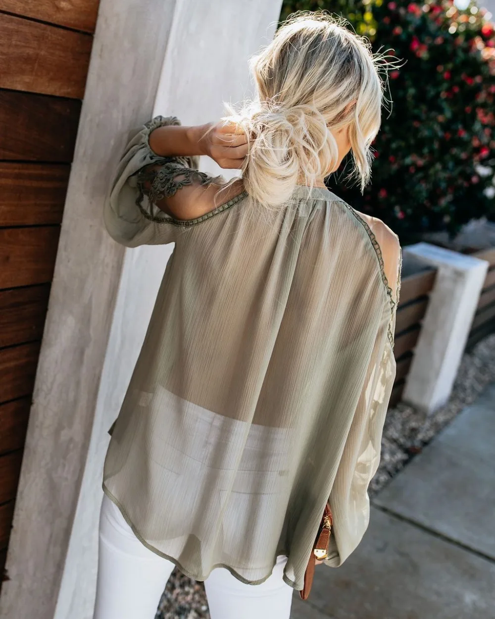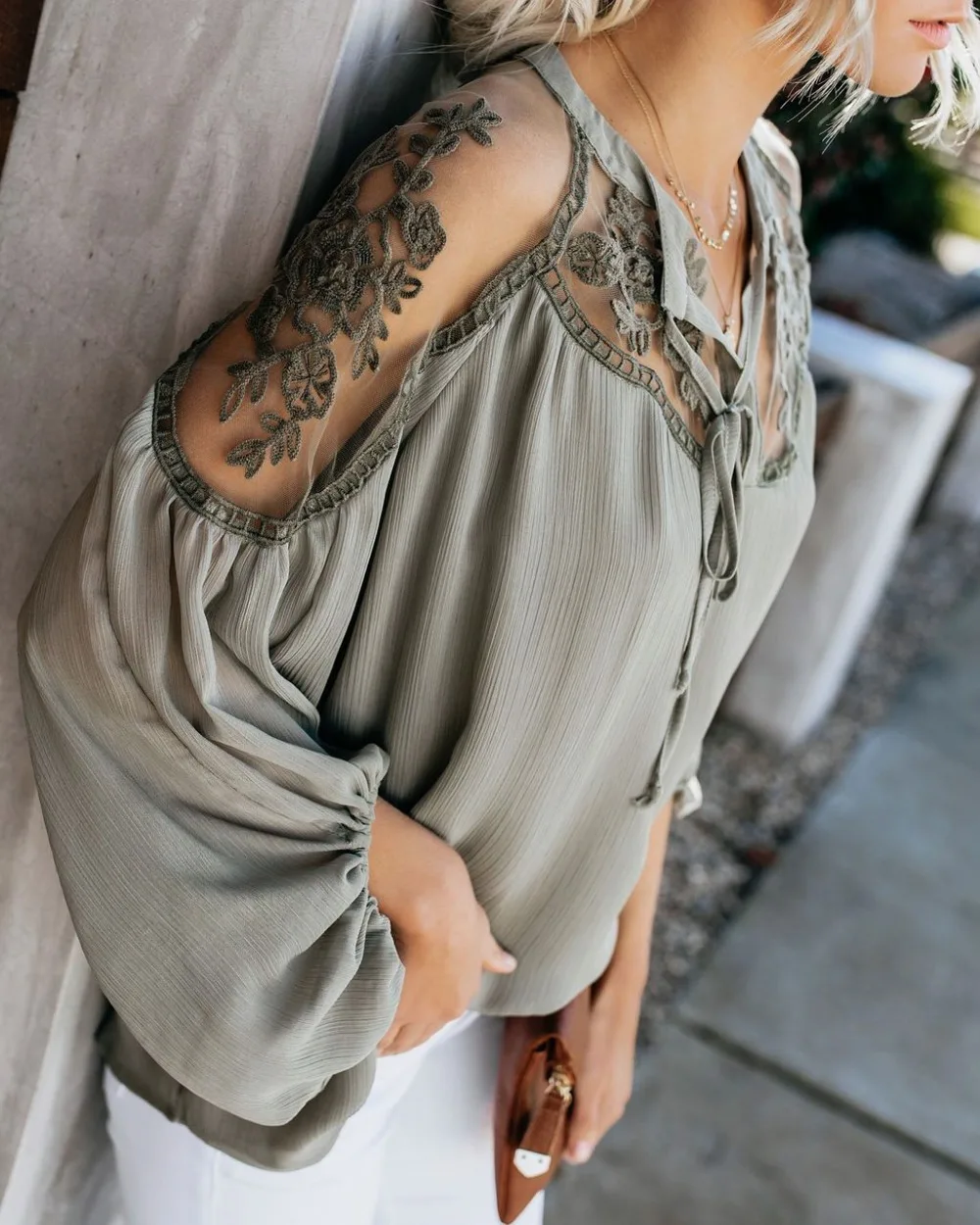 Белая Цветочная шифоновая кружевная блузка AYUALIN, Женский Топ, винтажные прозрачные блузки с длинным рукавом-фонариком в стиле бохо, Пляжная блуза