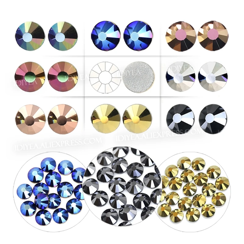 Металлические цвета, ss3-ss30, Стразы без горячей фиксации, с плоской задней частью, кристаллы, Стразы для ногтей, алмазный блеск, стеклянный камень для рукоделия, ткань, одежда