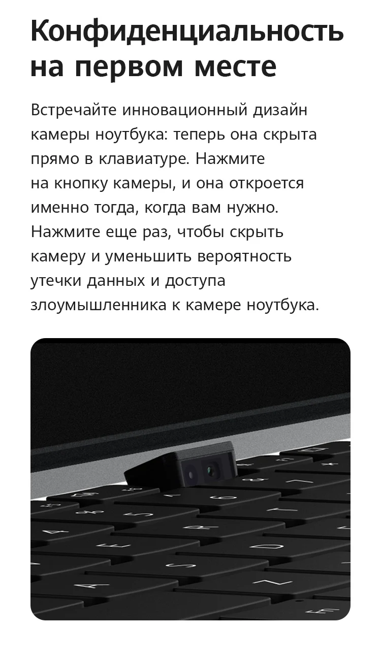 ноут выполнен очень качественно, стильный, работает очень шустро. очень оригинально выполнена веб-камера. классный ноутбук.