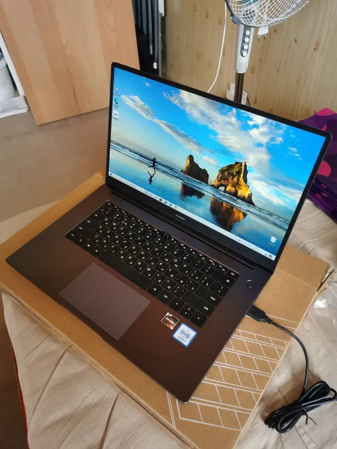 Получили в целости и сохранности, все работает, русифицировано. Есть пакет офисных программ. Функция передачи данных с телефона на ноут в одно касание - но только с телефоном Huawei. Красивый и лёгкий ноут. Сын доволен, как слон. Доставка в Новосибирск 9 дней.