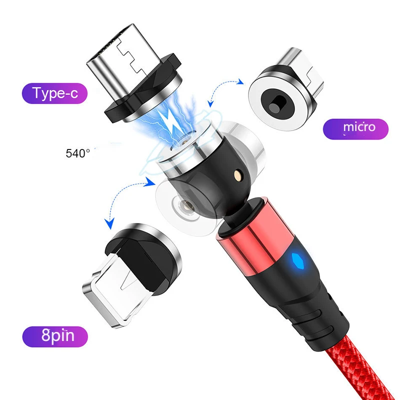 Магнитный кабель Micro USB Type-C для быстрой зарядки, телефонные аксессуары для iPhone 7, 8 Plus, Xr, 11, Xiaomi Redmi, зарядное устройство с поворотом на 540 градусов