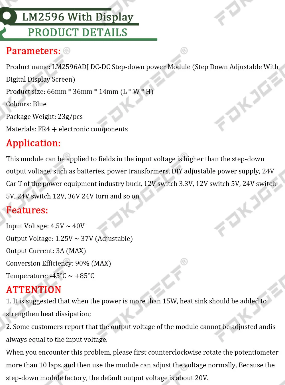 Страна: FR Color: LM2596 Display Доставка: Standard Shipping 05.01.2021
