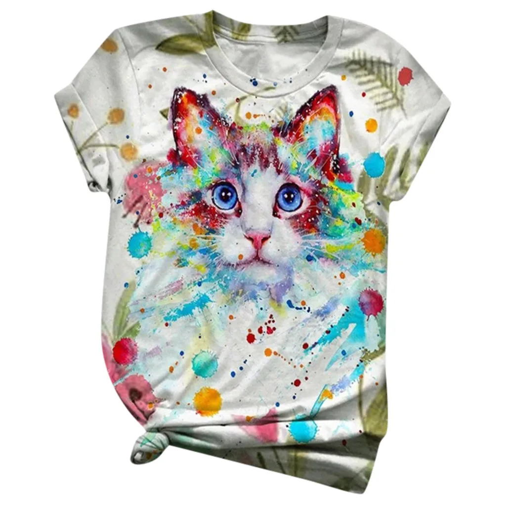 Женская футболка с коротким рукавом размера плюс с 3D принтом животных и круглым вырезом