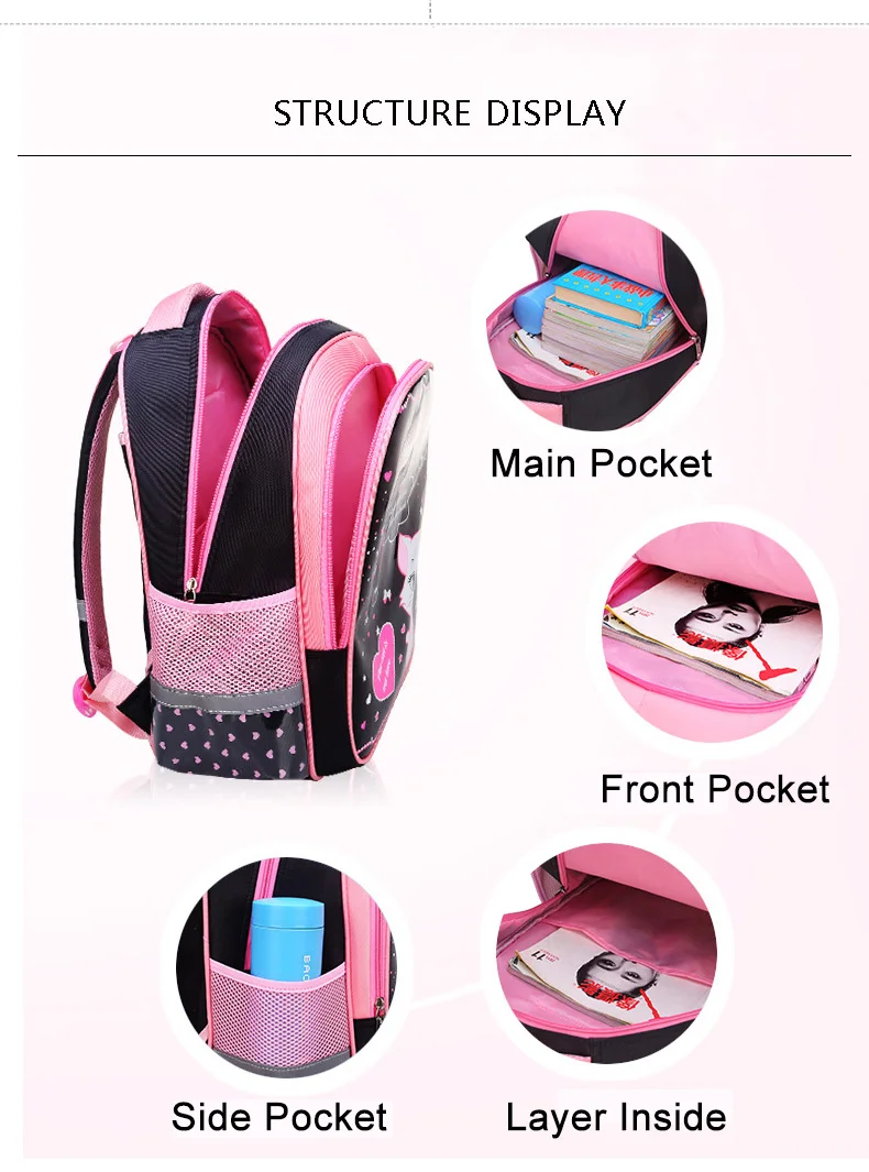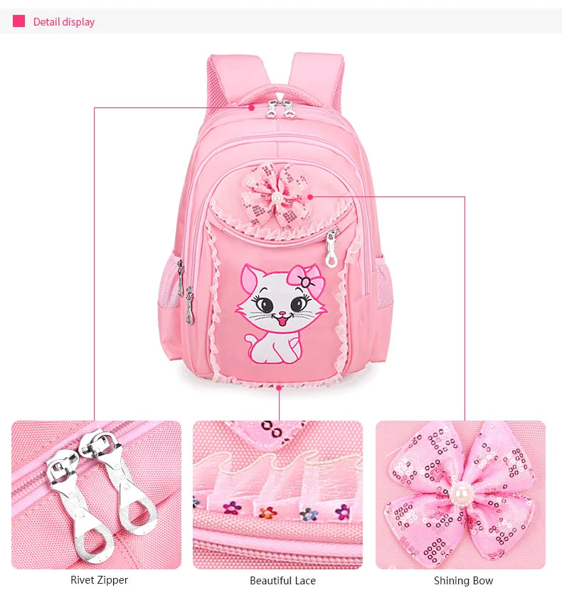 Школьные ранцы для девочек, милые детские рюкзаки с милыми мультяшными принцессами и кошками, Детские портфели для учеников начальной школы