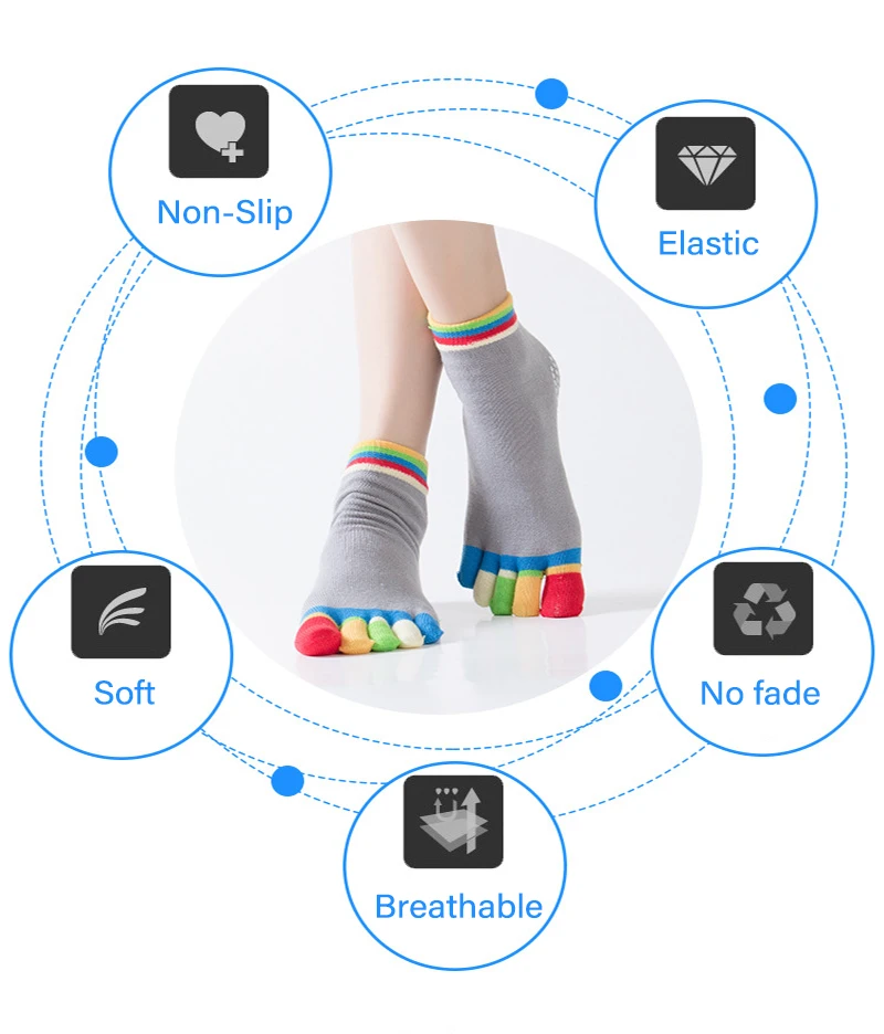 Нескользящие носки для йоги, женские цветные носки с пятью пальцами...