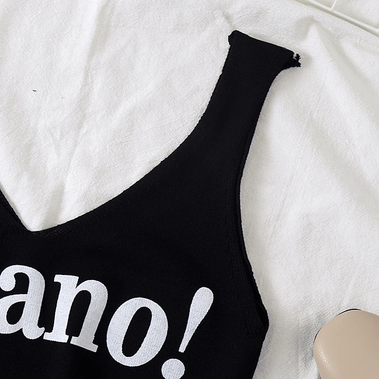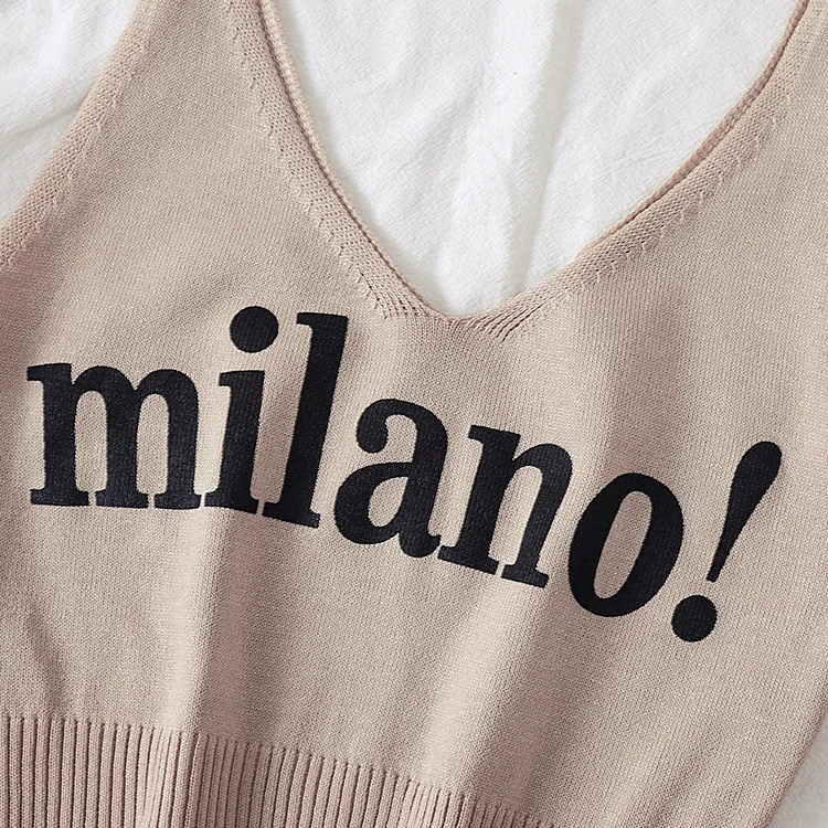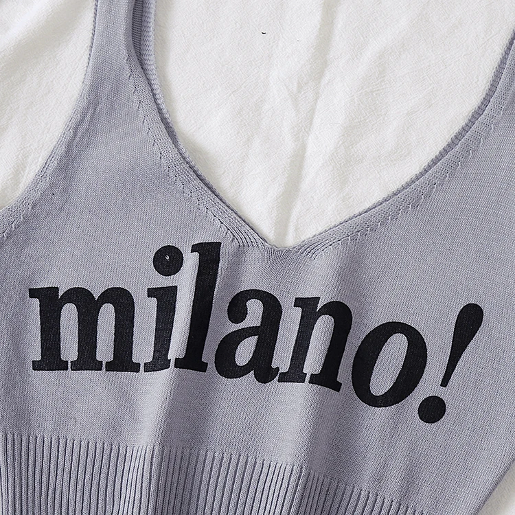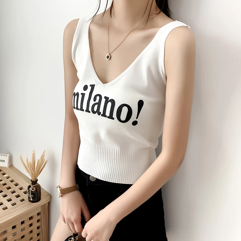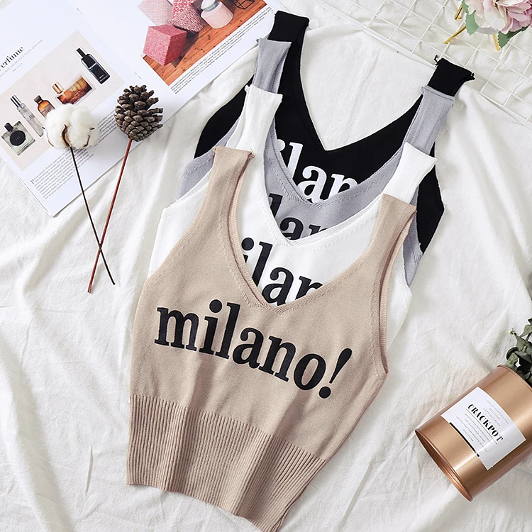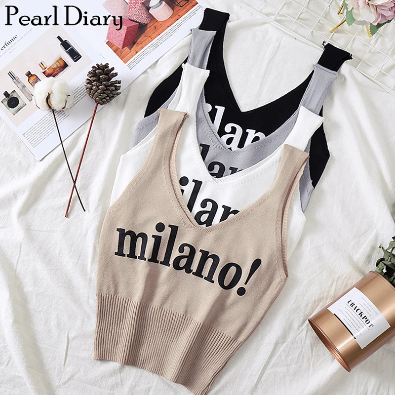 Pearl Diary трикотажные укороченные топы для женщин с v-образным вырезом и буквенным принтом Milano, летний сексуальный топ на бретелях без рукавов, облегающие топы для ночного клуба