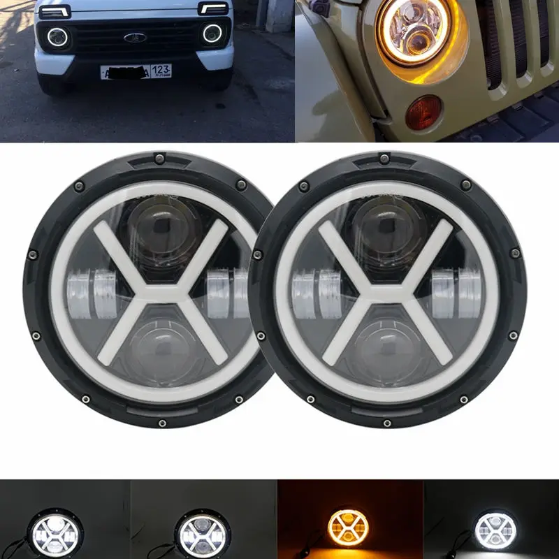 2 шт. 7 дюймов светодиодный фар головного света с Halo Кольцо янтарь поворотник для lada niva 4x4 suzuki samurai 7 "DRL галогеновые фары головного света для ВАЗ 2101