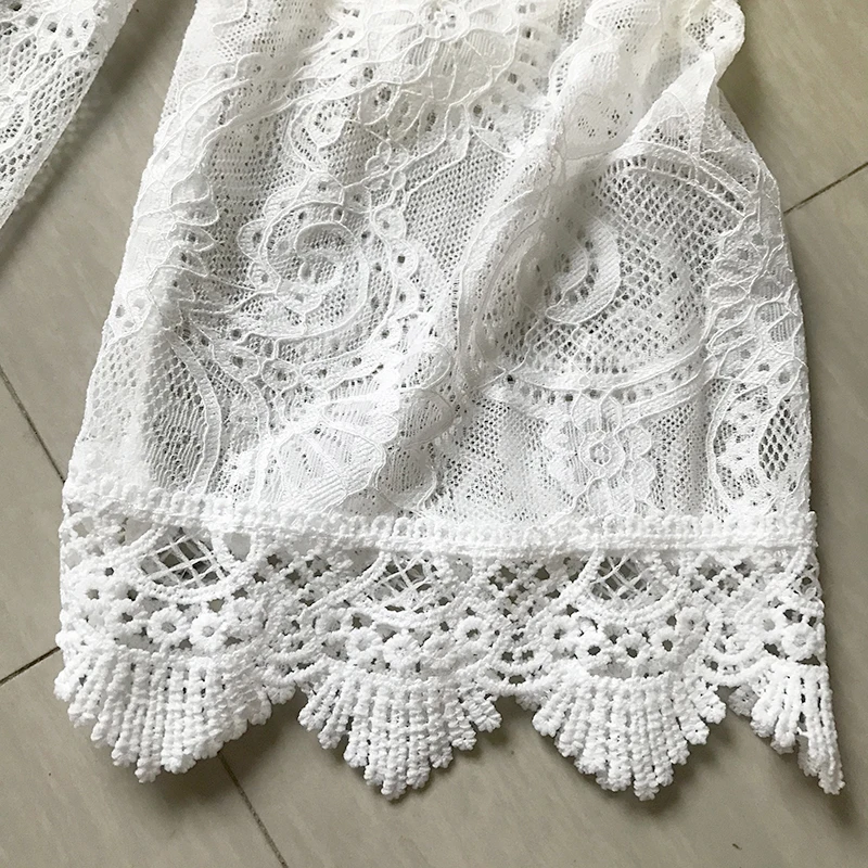 Кружевное пляжное платье Fitshinling, с глубоким V-образным вырезом, с длинным рукавом, богемное, тонкое, сексуальное, короткое, для отдыха, парео для купальников