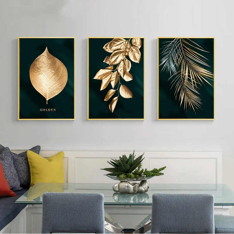 Картина на холсте с изображением золотых растений, Листьев, настенный плакат, современный стиль, художественные картины для украшения гостиной, Современный домашний декор