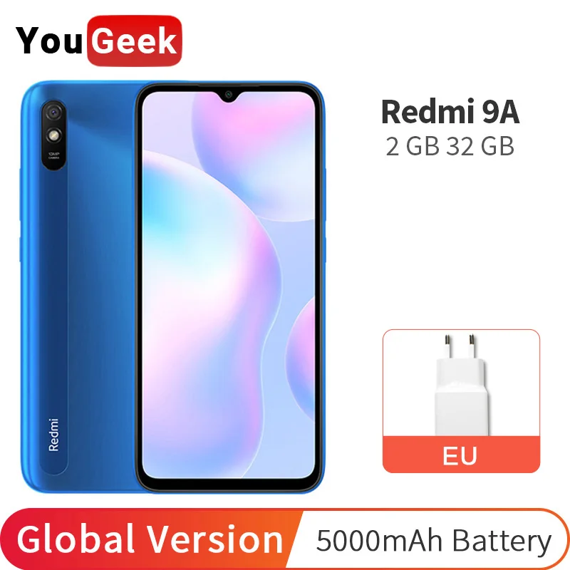 Смартфон Xiaomi Redmi 9A, 2 + 32 ГБ, аккумулятор 5000 мАч, 8-ядерный, 6,53 дюйма, 13 МП