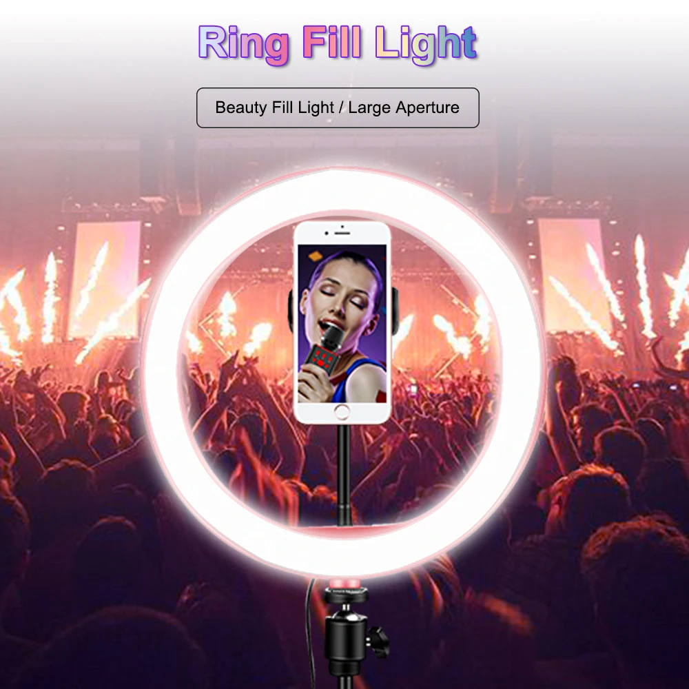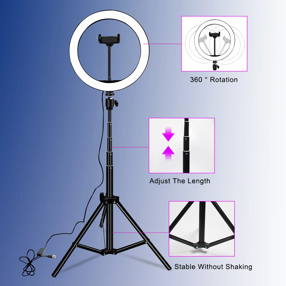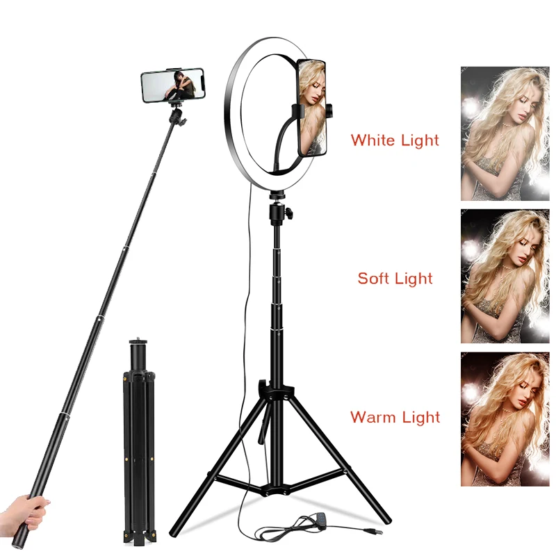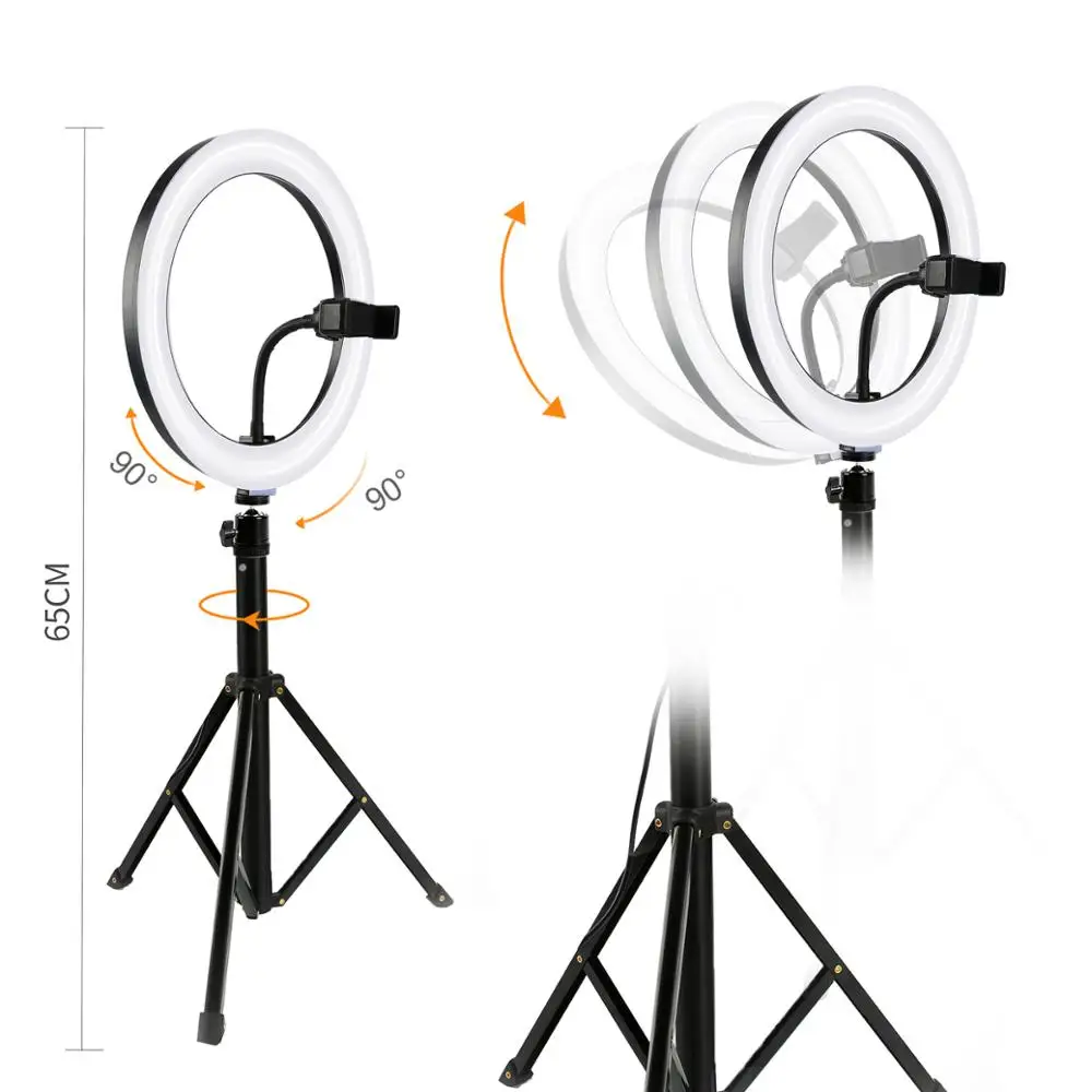 Кольцесветильник светодиодный светильник для селфи, 26 см, со штативом, с выдвижной подставкой, 130 см