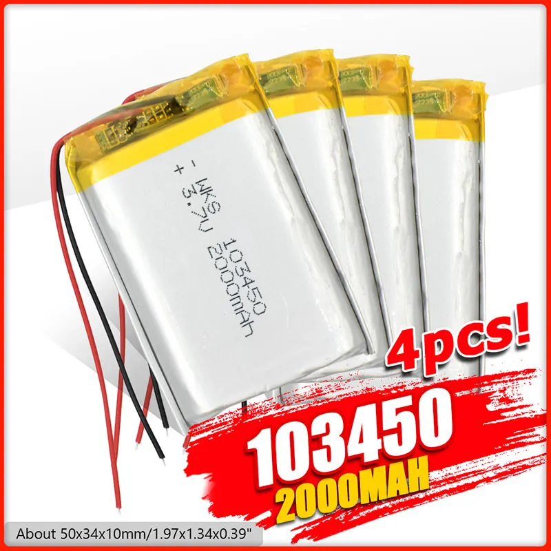 Литий-полимерный аккумулятор 103450, 3,7 в, 2000 мА ч, для GPS-навигатора, MP5, Bluetooth-динамика, гарнитуры, электронной книги, камеры