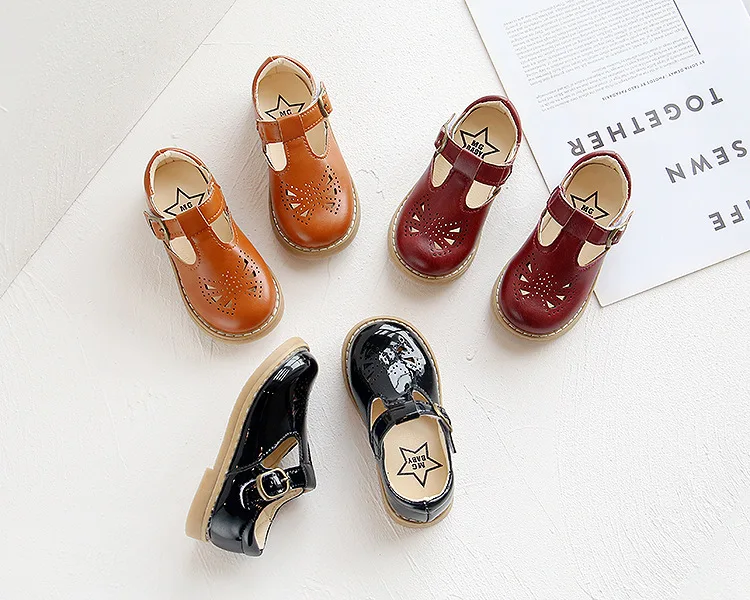 Для маленьких детей, для маленьких девочек, для детей, ботинки-мартинсы, кожаные туфли для детей полые Повседневная броская в виде буквы т обувь на возраст 1, 2, 3, 4, От 6 до 7 лет новый осенний