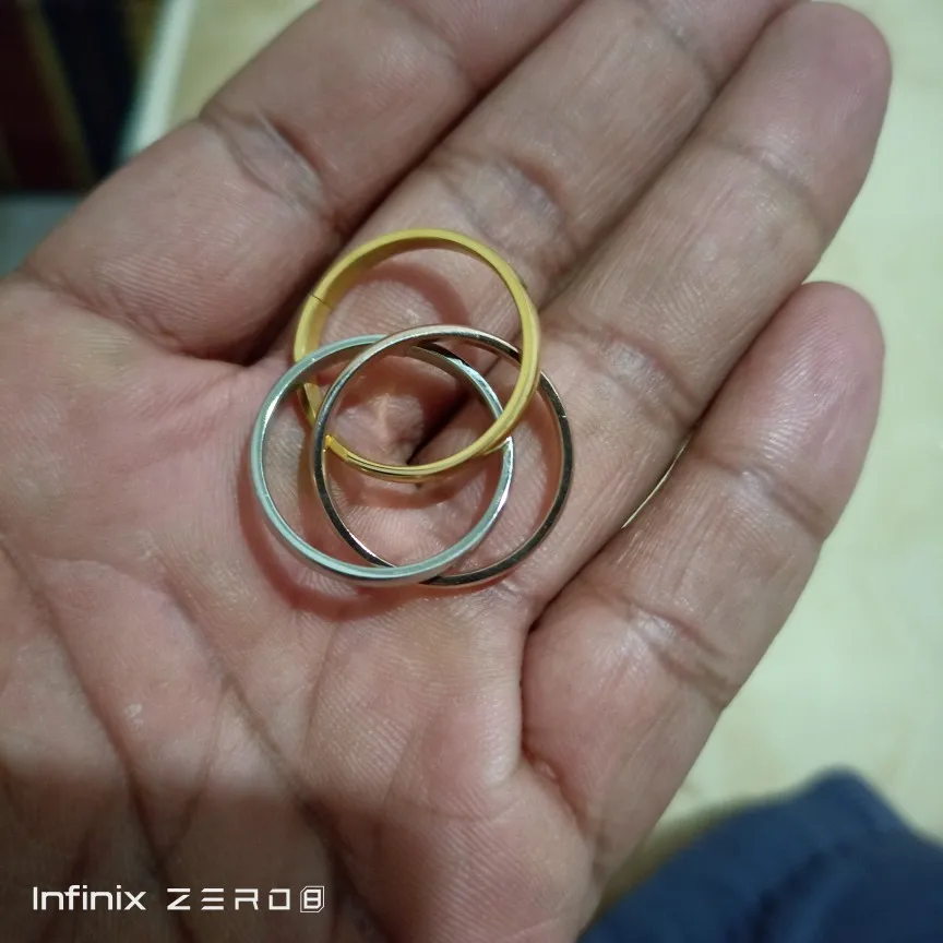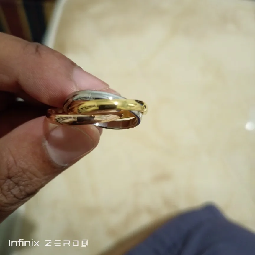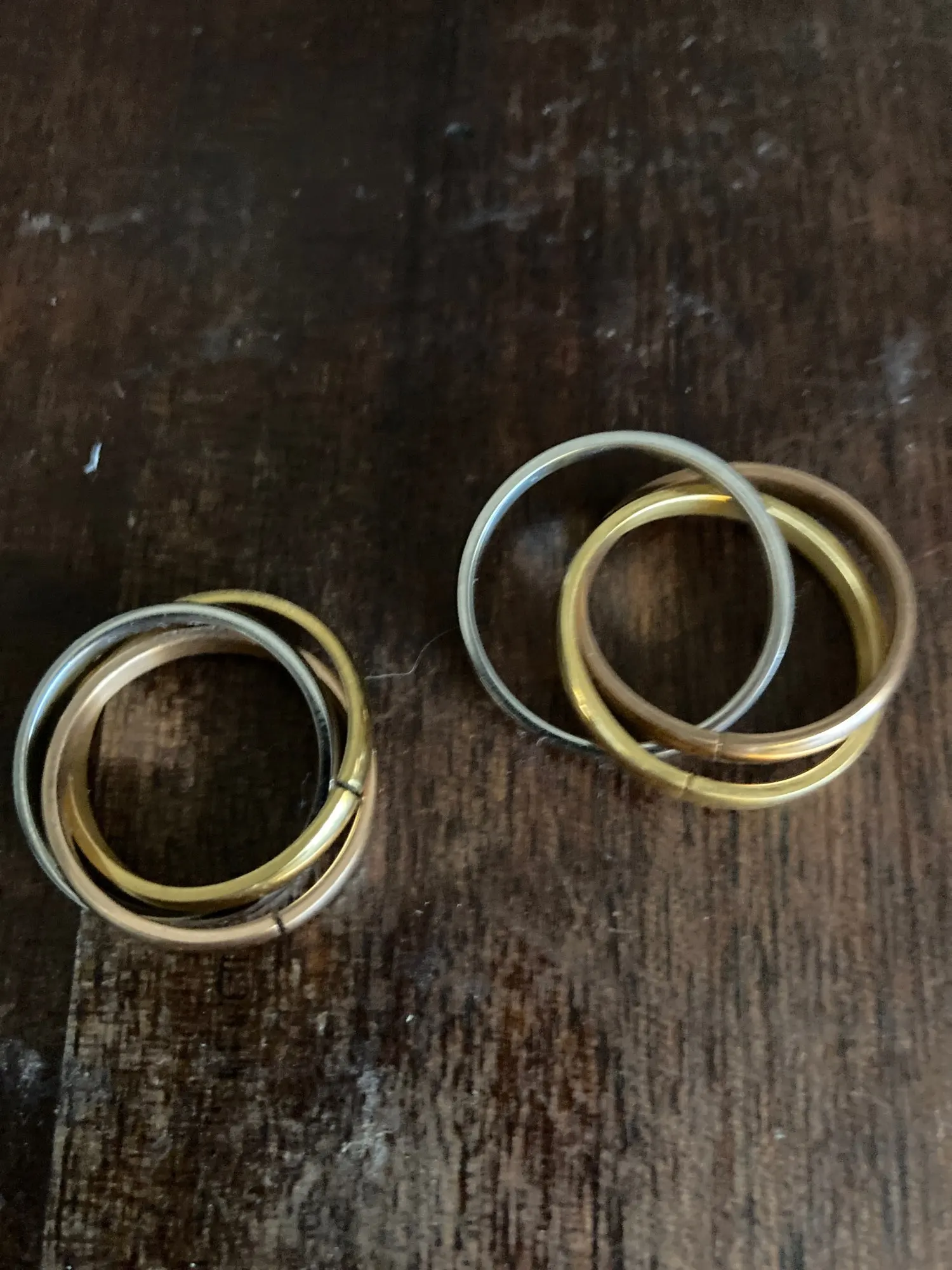 Куплено дважды, два разных размера и все еще слишком велико, кольцо не совпадает. Кроме того, 2 из трех колец обрезаны так, как будто их надевают друг на друга, это совсем не эстетично. Но это качественный, блестящий металл, который имеет свой эффект.