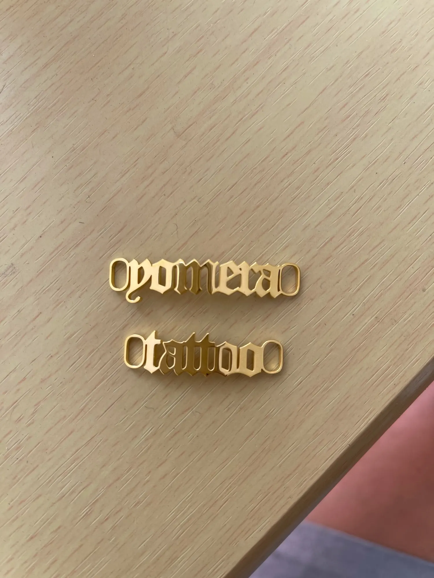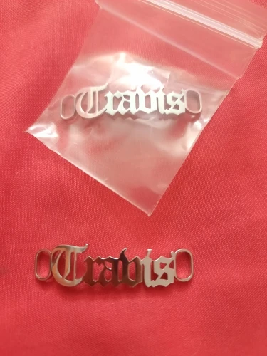 Классная вещица! Изготовление и отправка заняли довольно много времени, около 2 месяцев. Зато пришло всё чётко, без ошибок в написании, металл не особо твёрдый, так что можно немного подогнуть, настроить под свою обувь.
