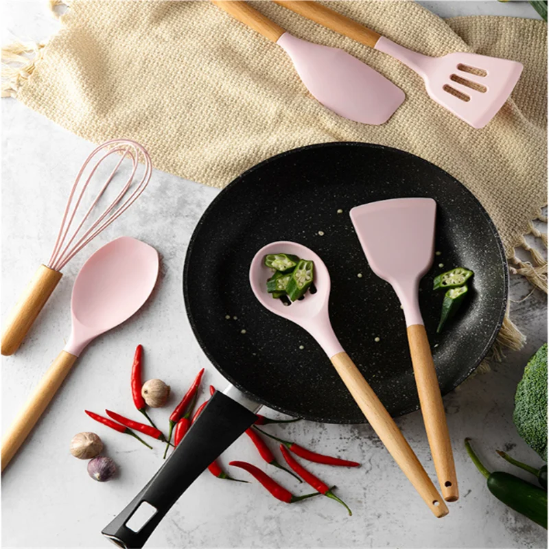 11 шт.компл. 9 шт.компл. розовая силиконовая кухонная утварь с дере...