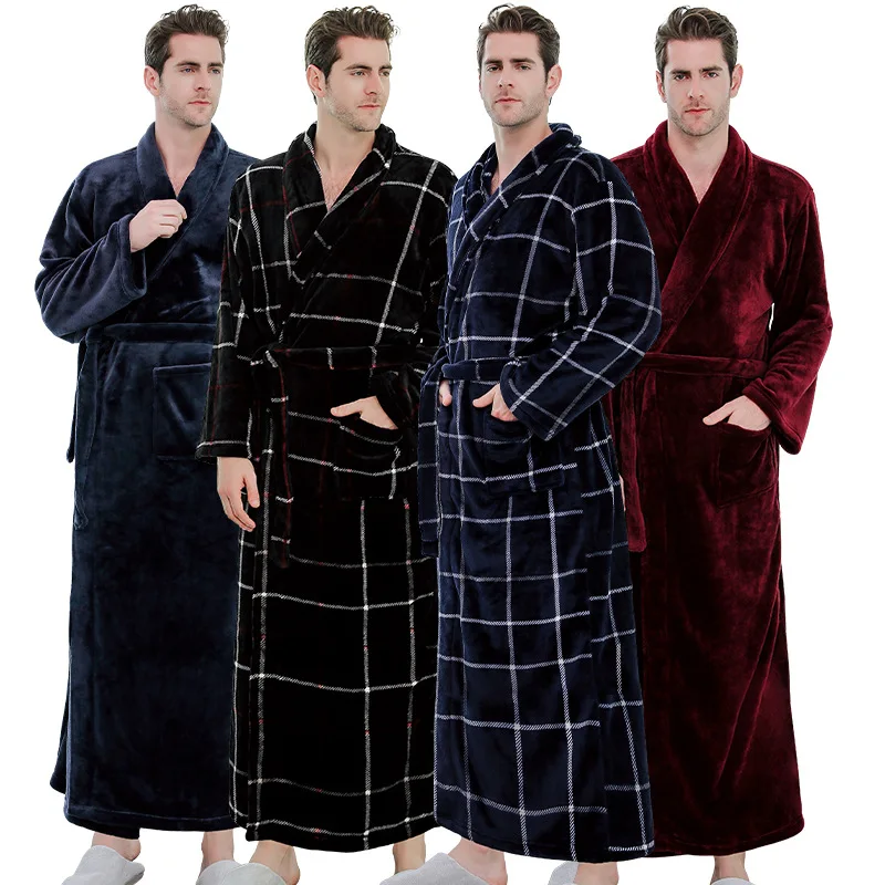 Мужской фланелевый Халат, зимний банный халат из кораллового флиса, размера плюс